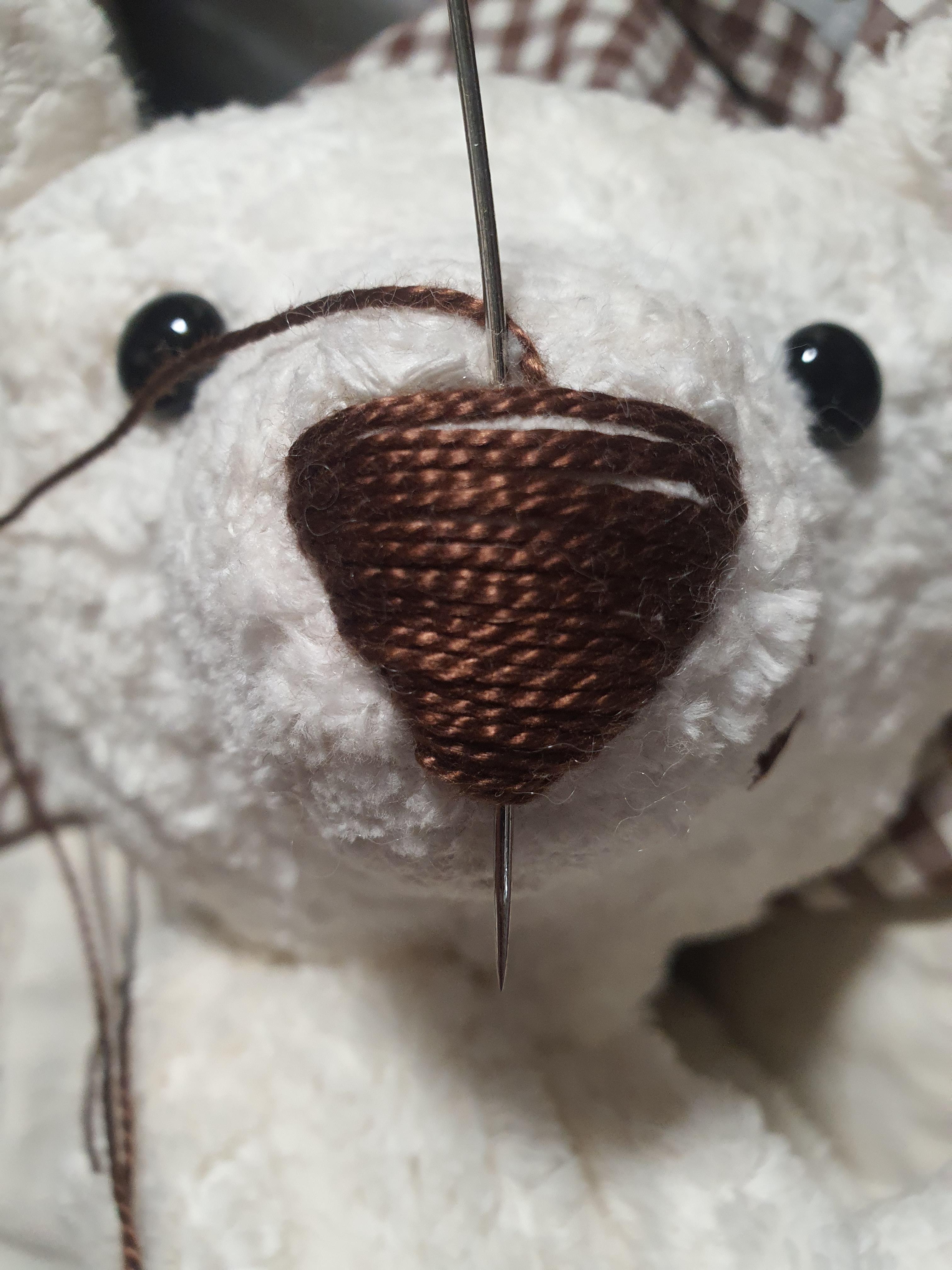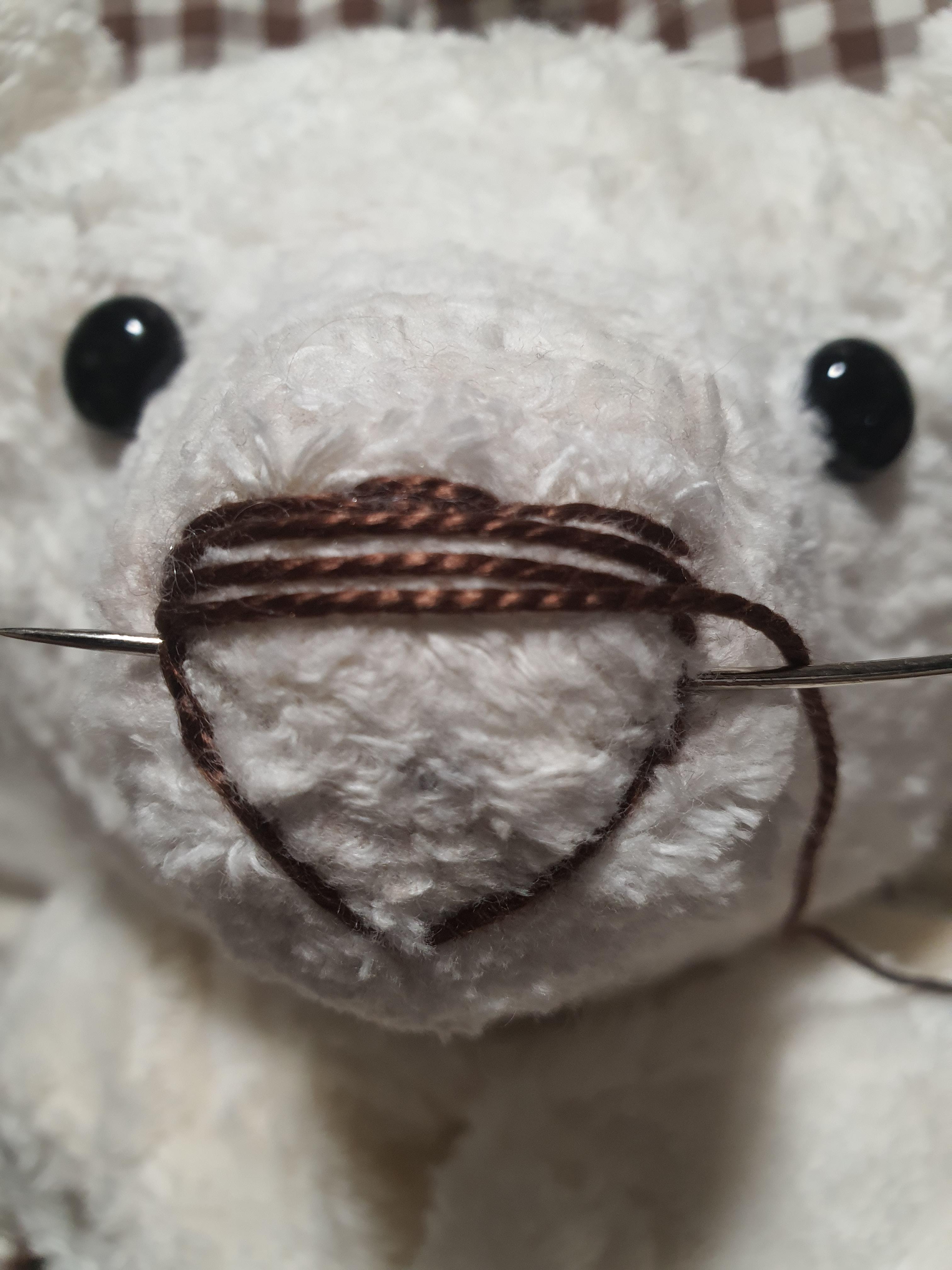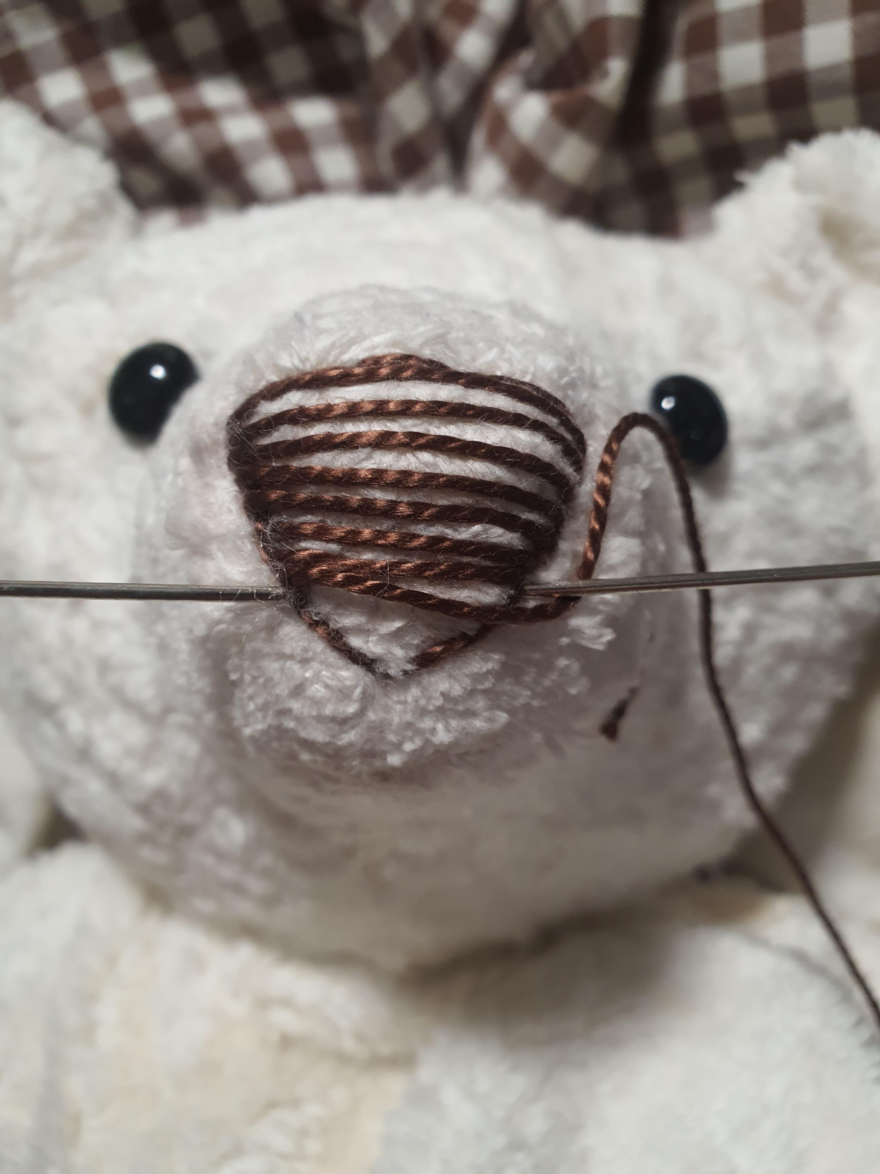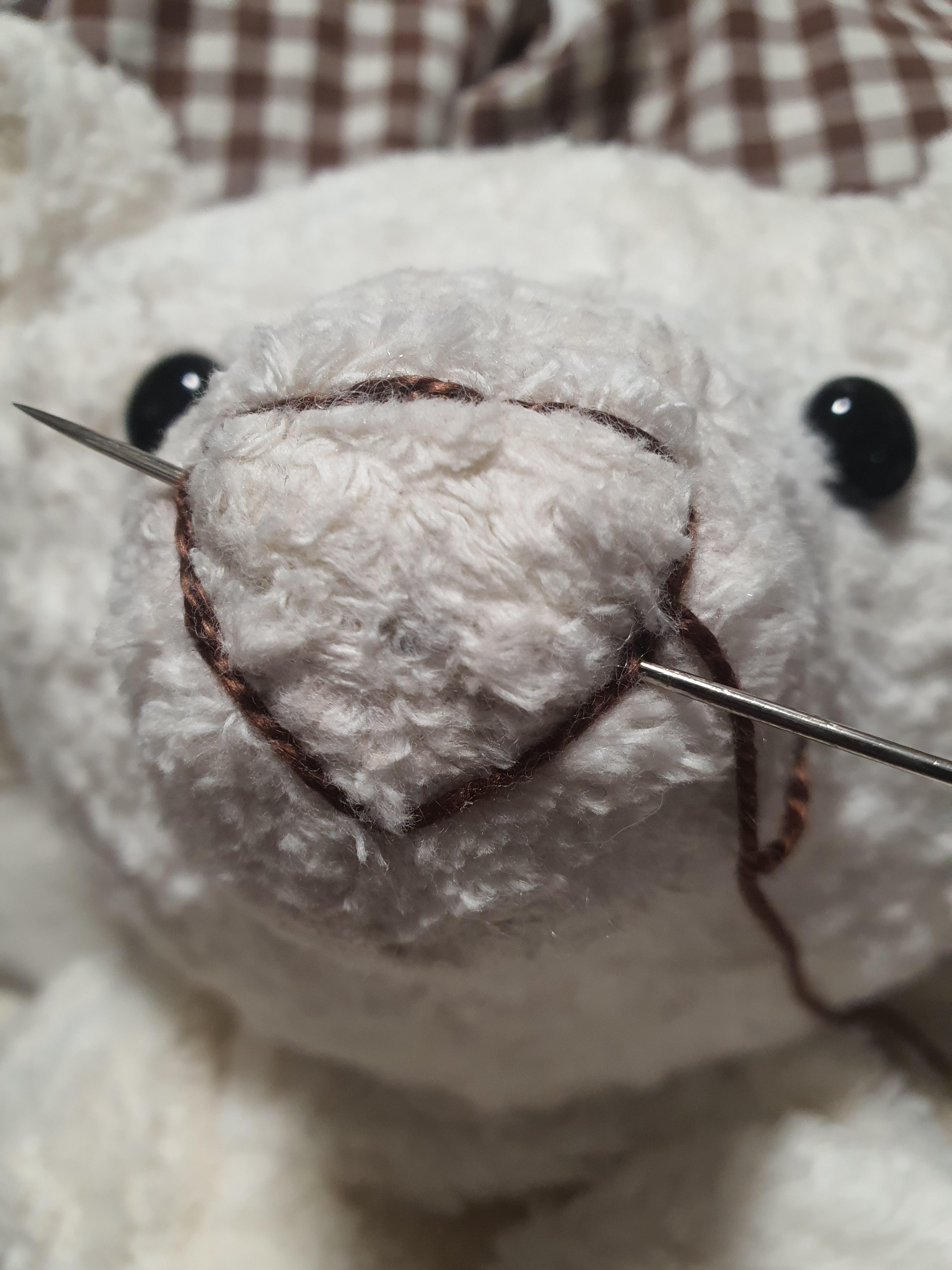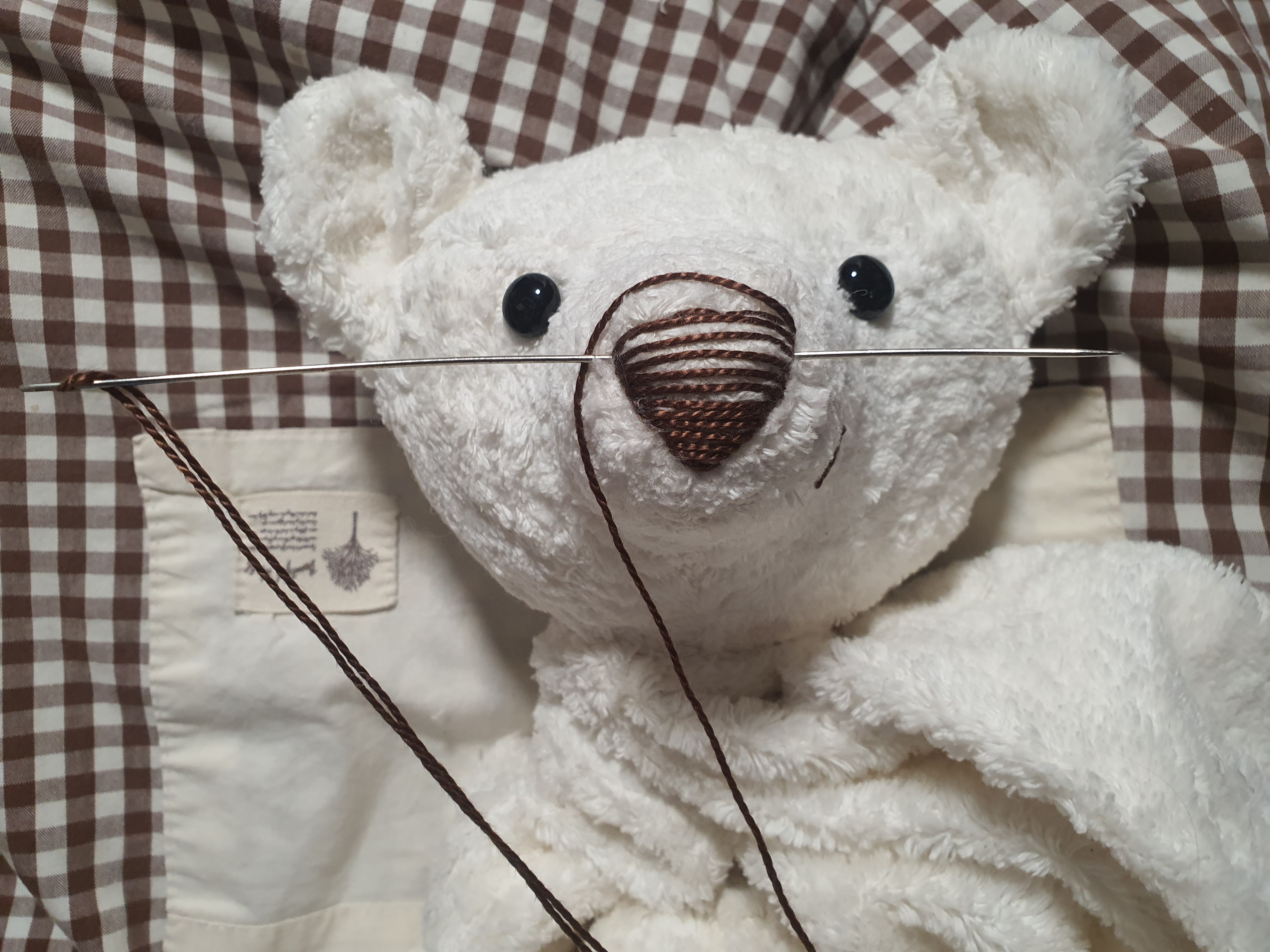 코가 크다면 바느질 중간에 가이드 실이 움직일 수 있으므로 중간중간 고정해 줍니다.
