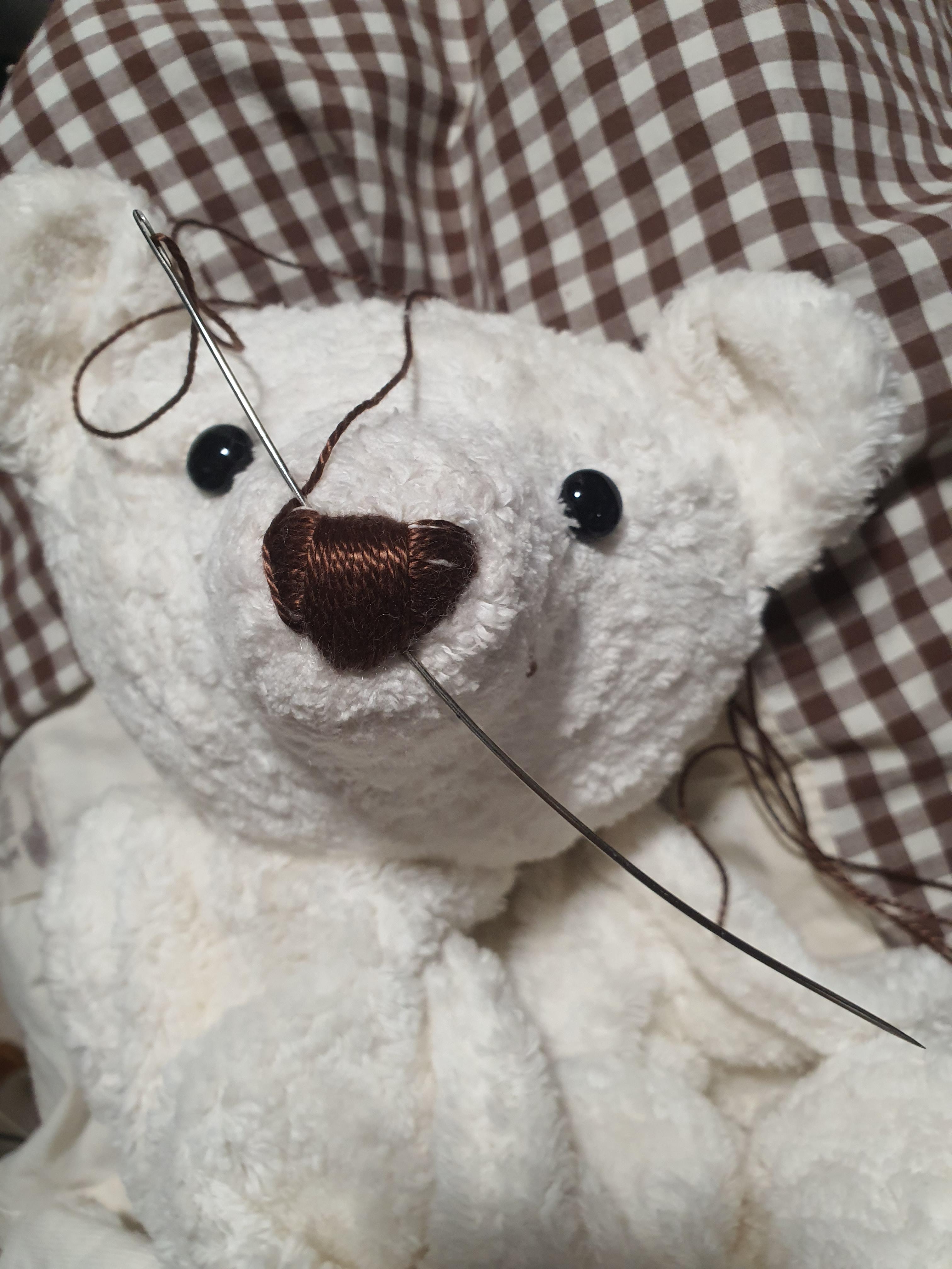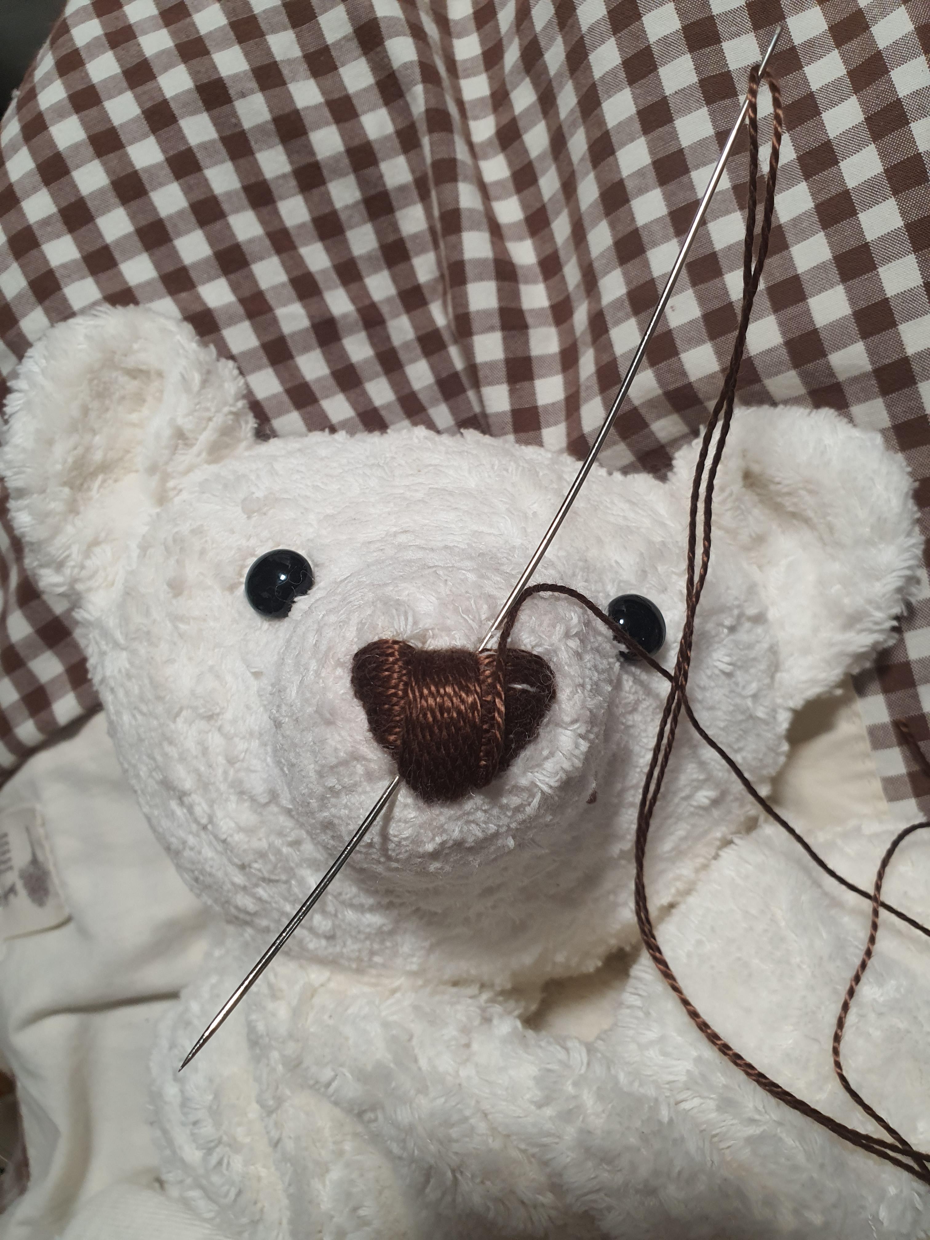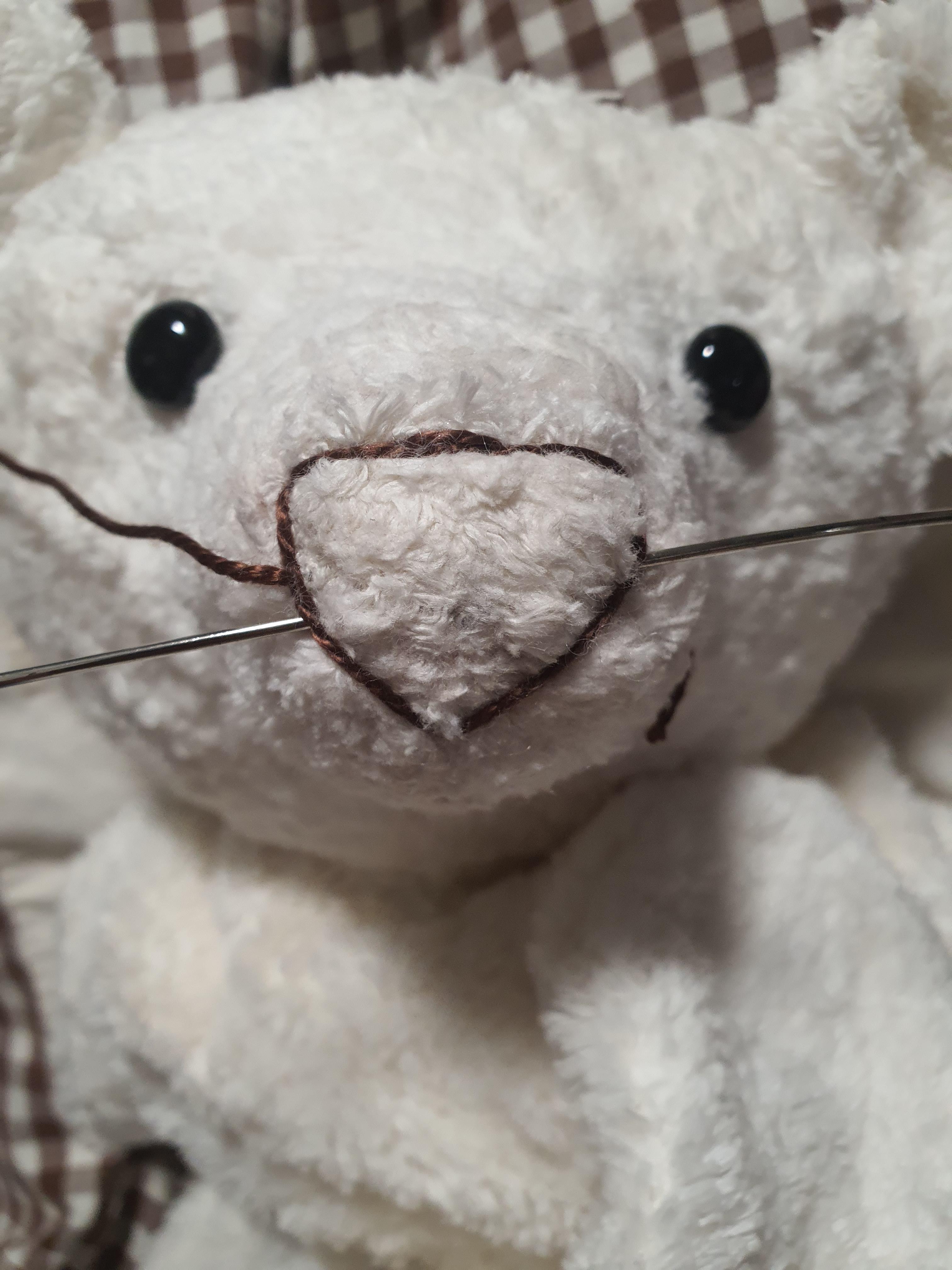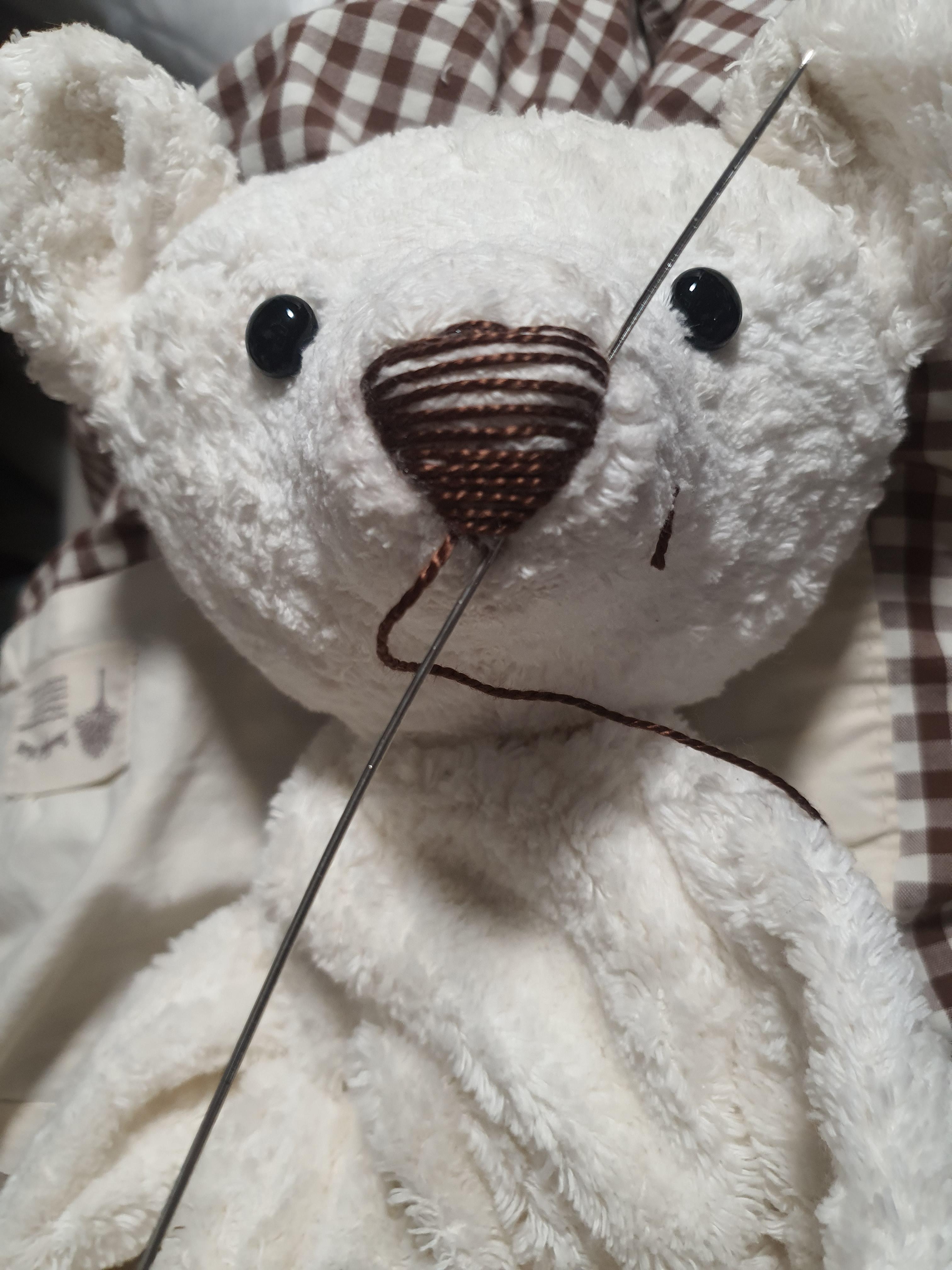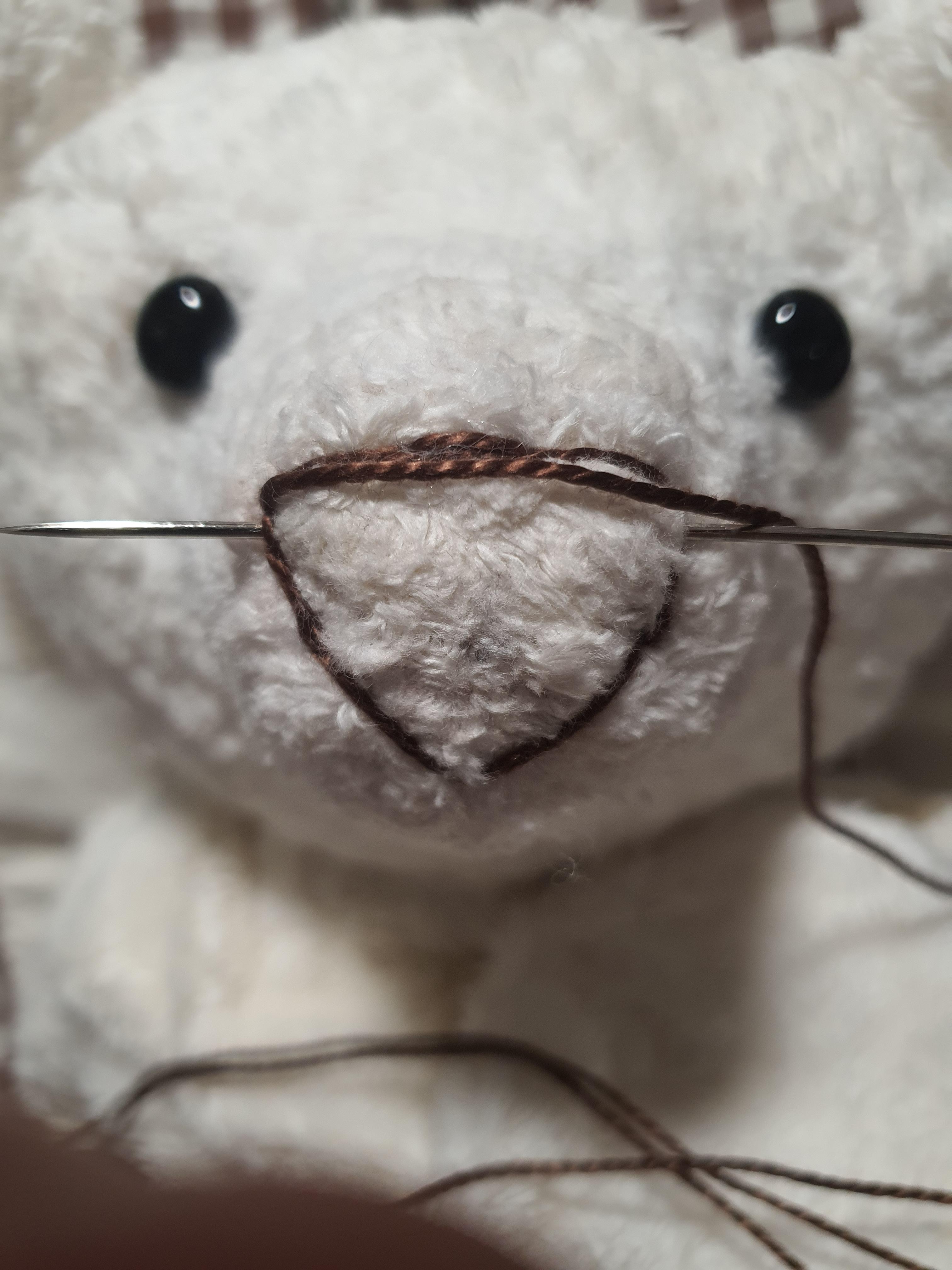 코가 크다면 바느질 중간에 가이드 실이 움직일 수 있으므로 중간중간 고정해 줍니다.