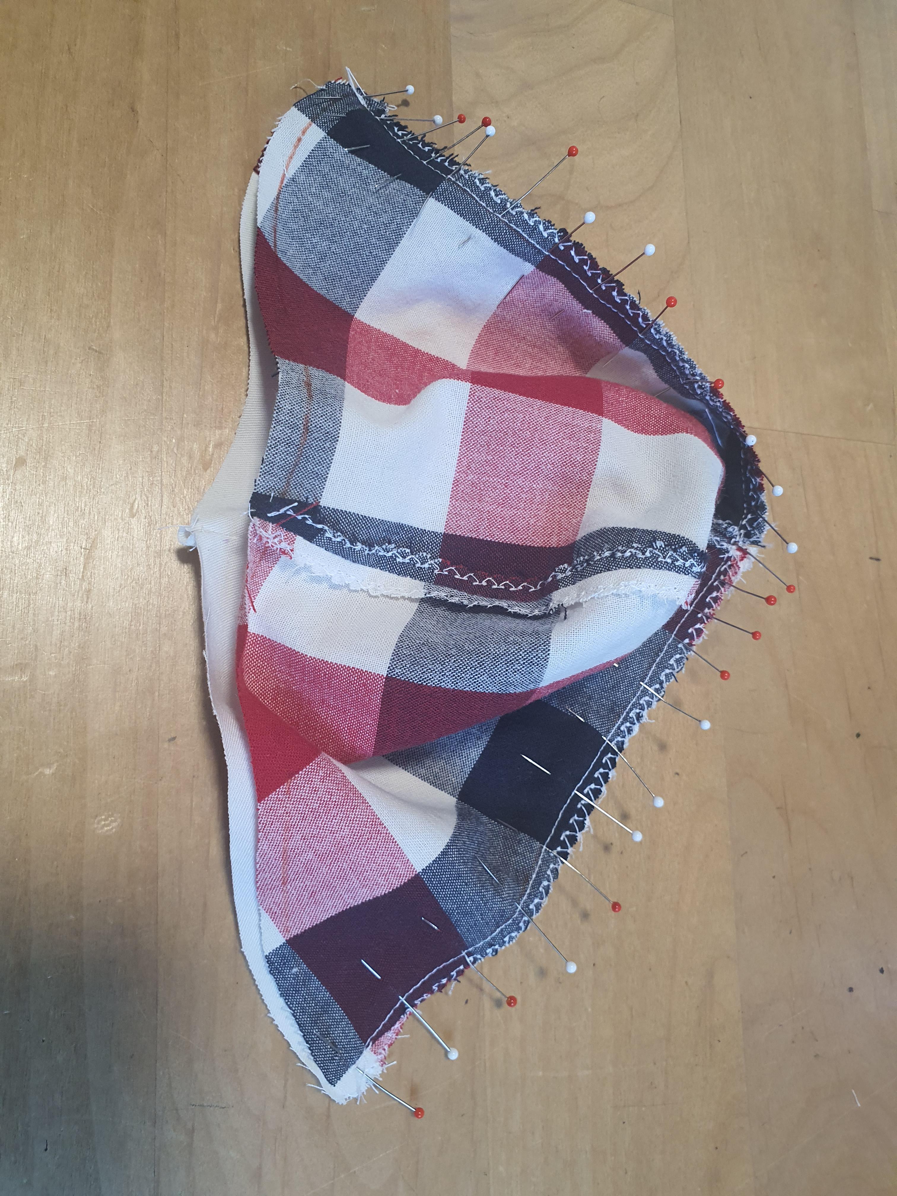 모자 안감과 겉감을 펼쳐서 연결해 줍니다.