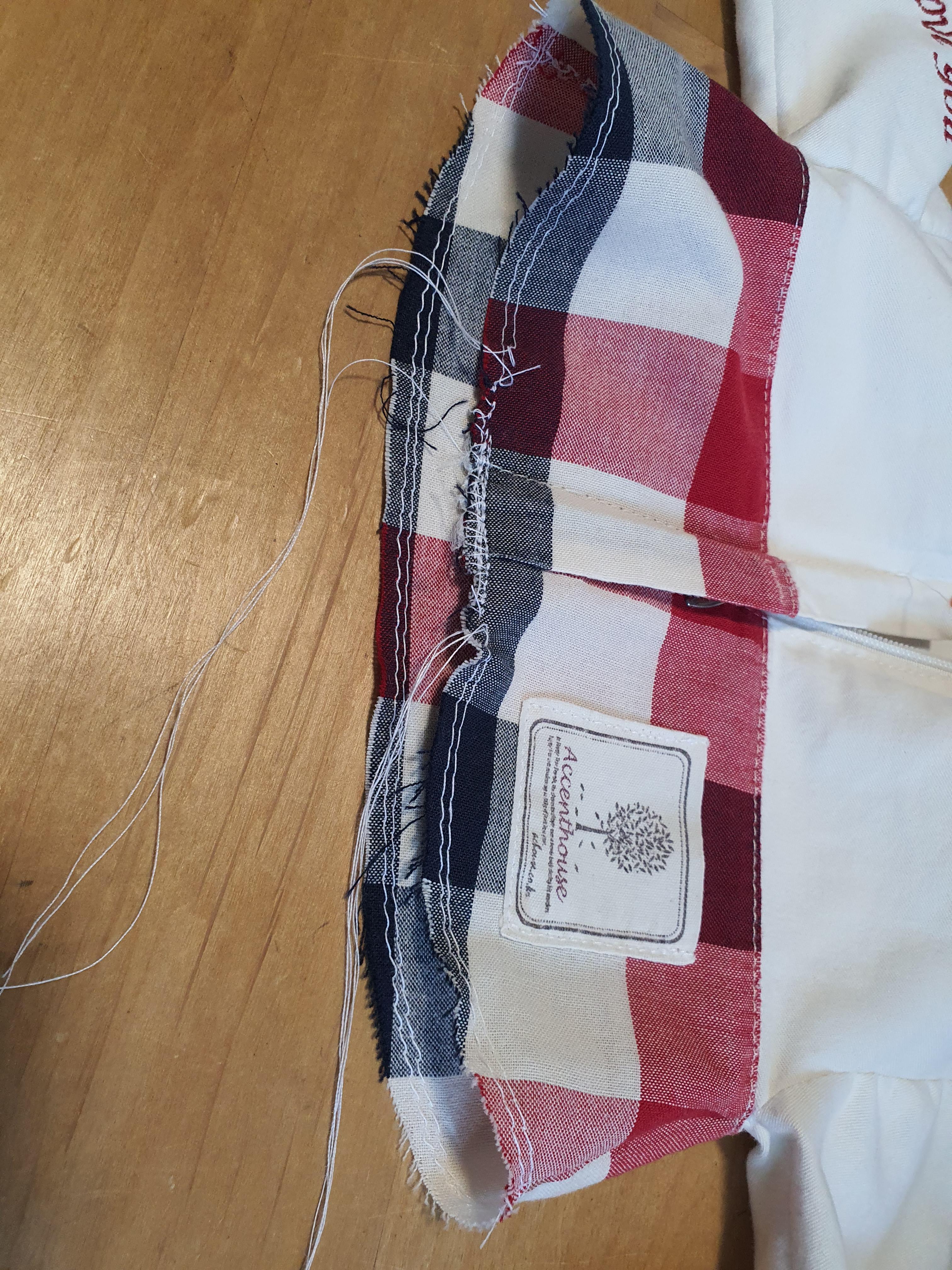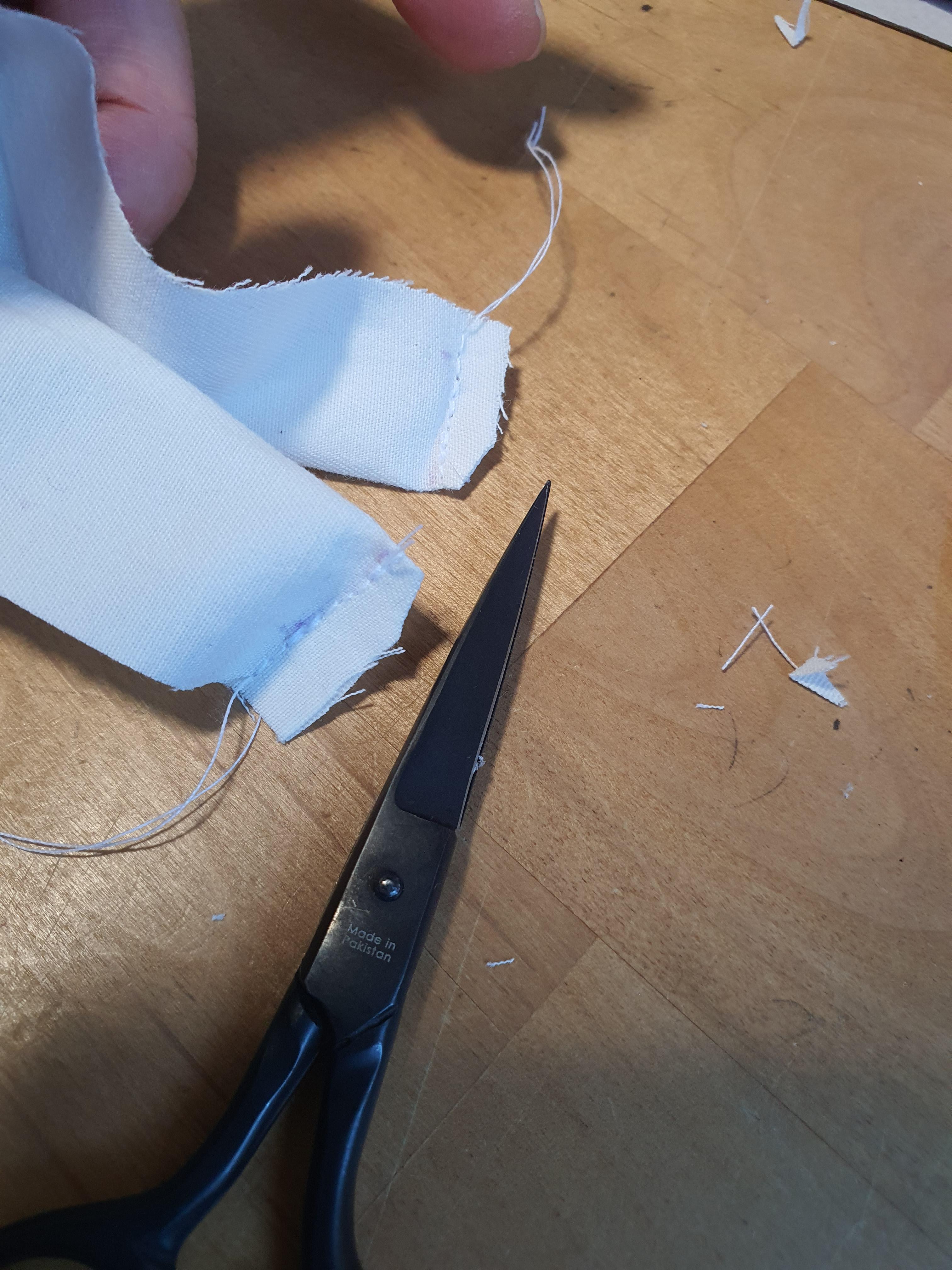 바느질 땀수를 크게 조절해서 실이 잘 당겨지도록 한 후