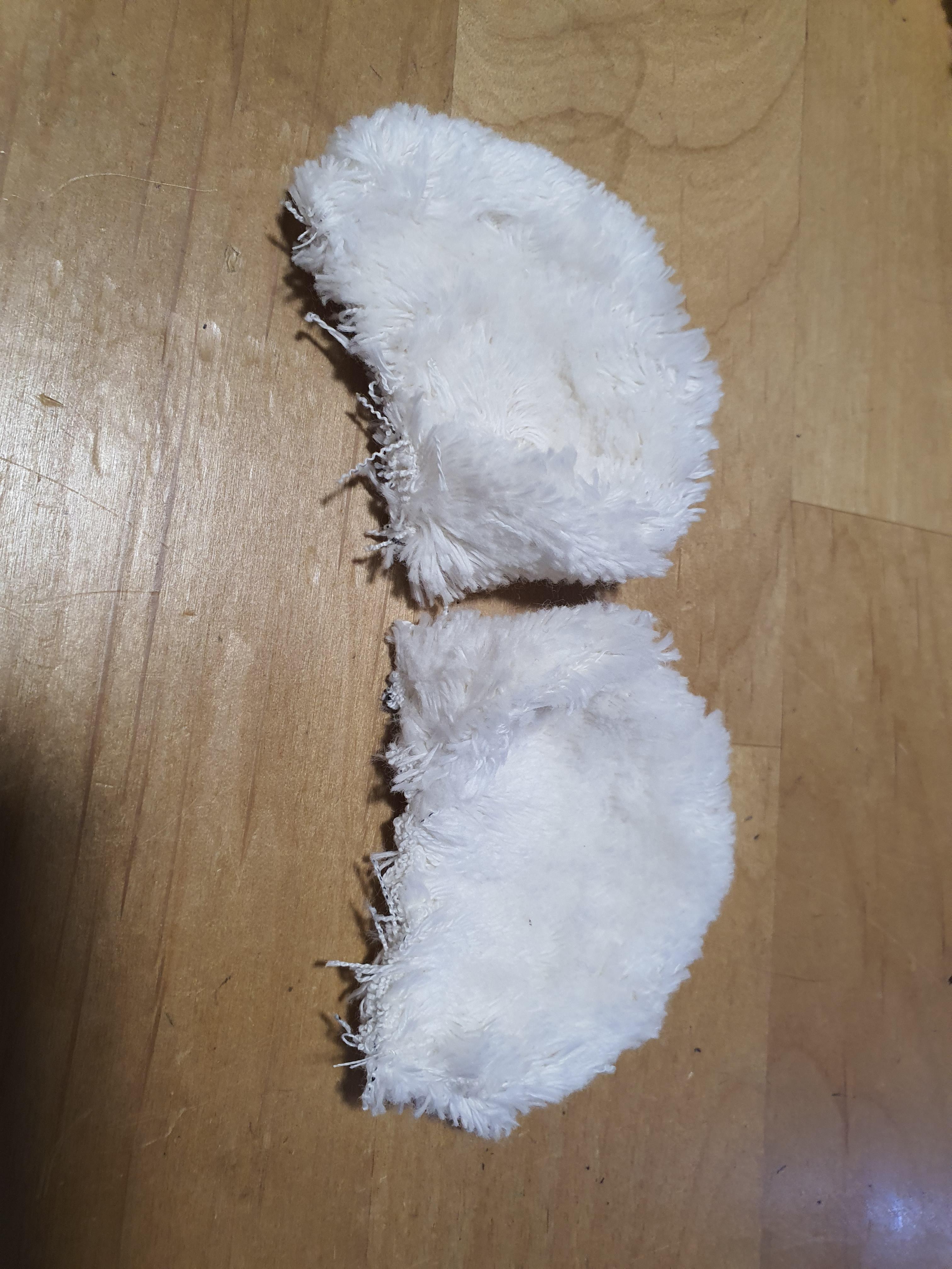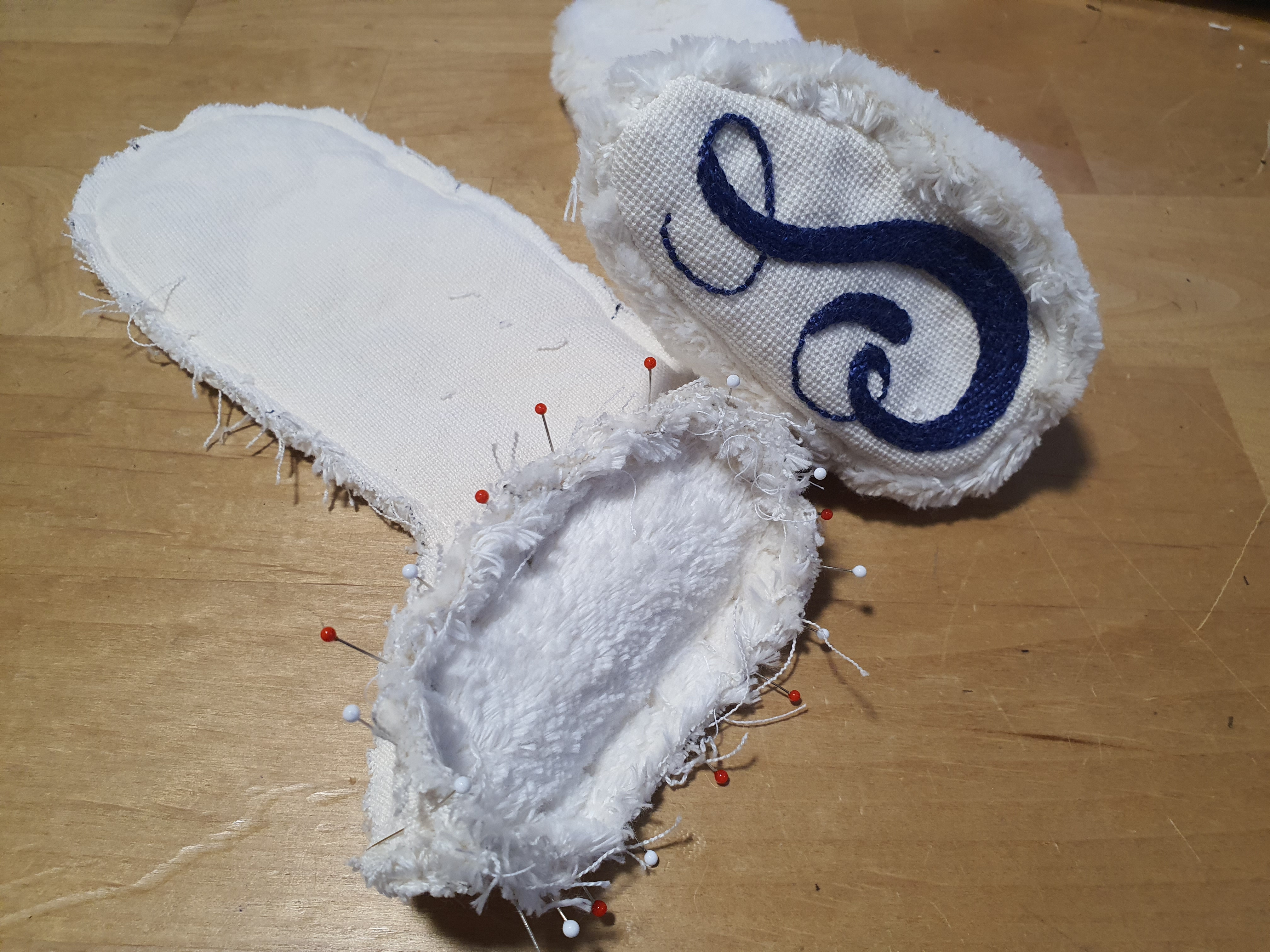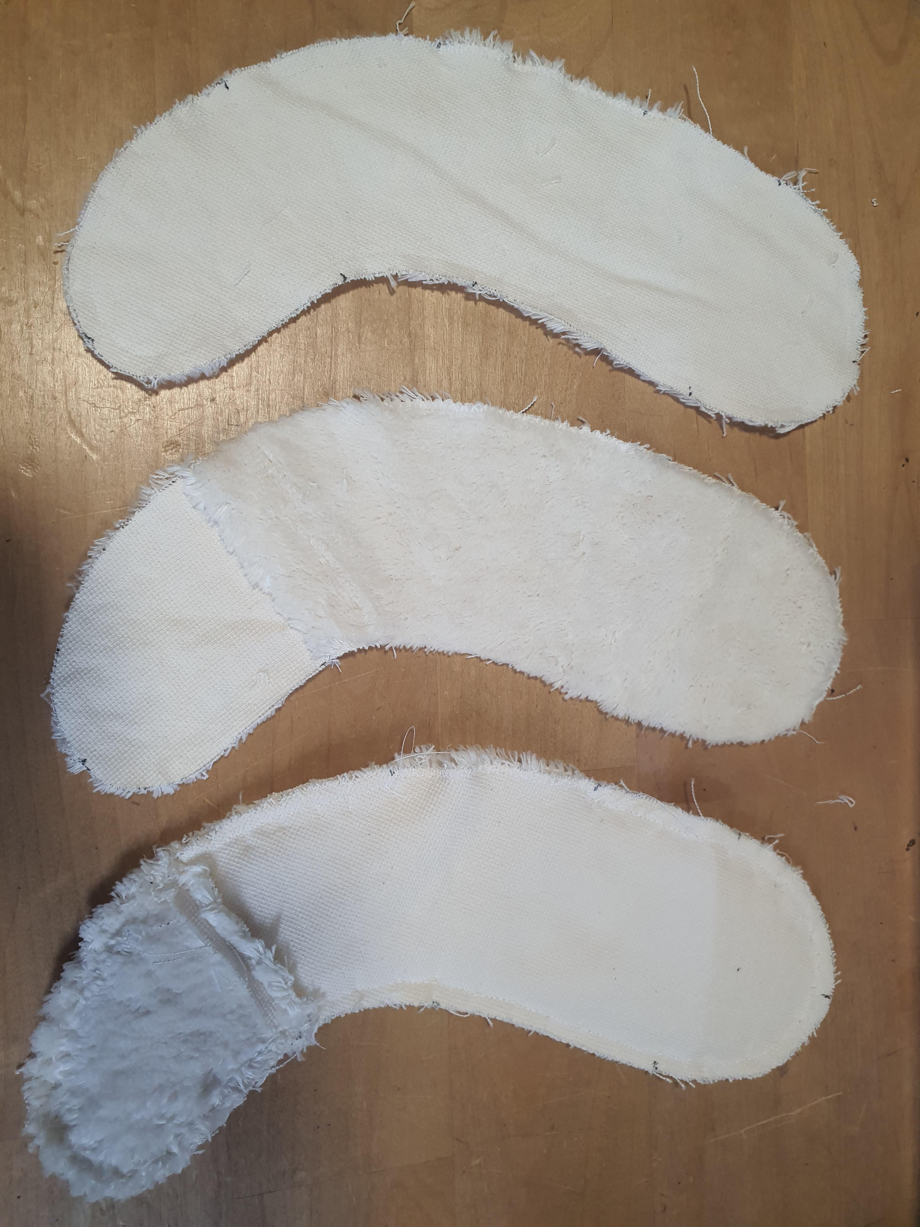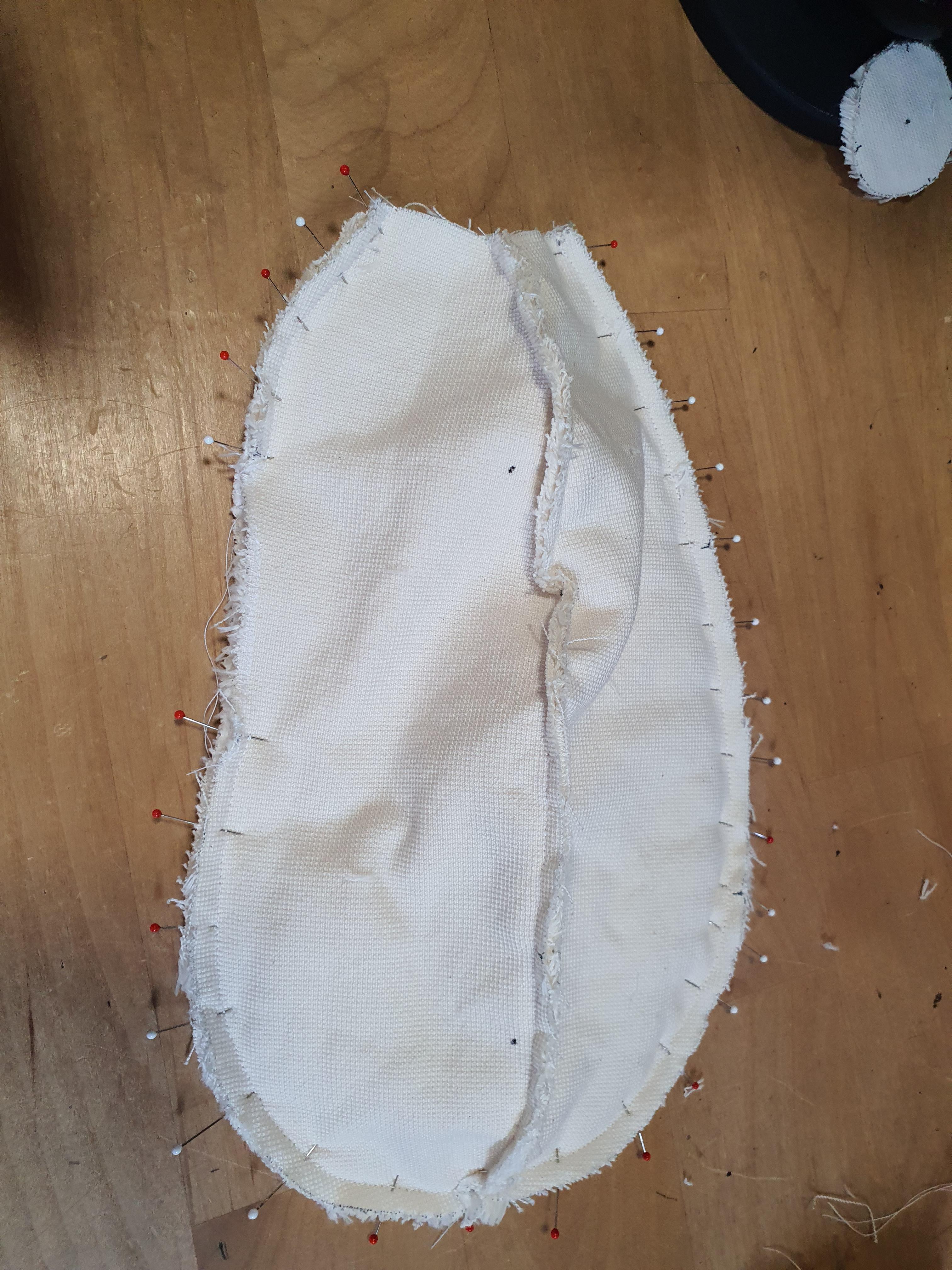 귀 원단을 대칭으로 포개어 놓고 곡선 부분만 바느질 한 후 뒤집어 줍니다.