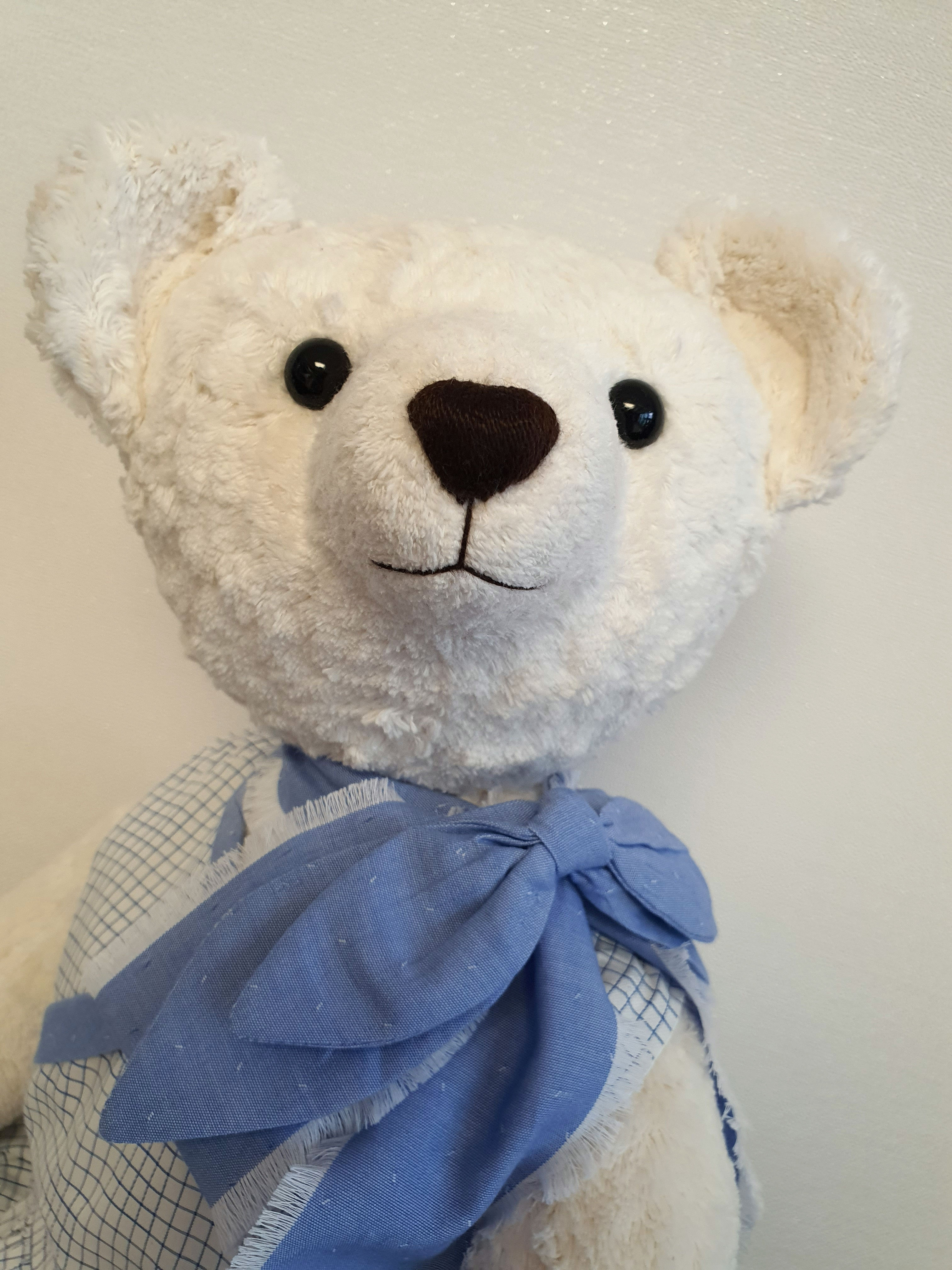 신생아 옷이나 12개월 아기옷등 아기때 옷이 잘 맞도록 팔, 다리, 키를 디자인 한 테디베어 입니다.