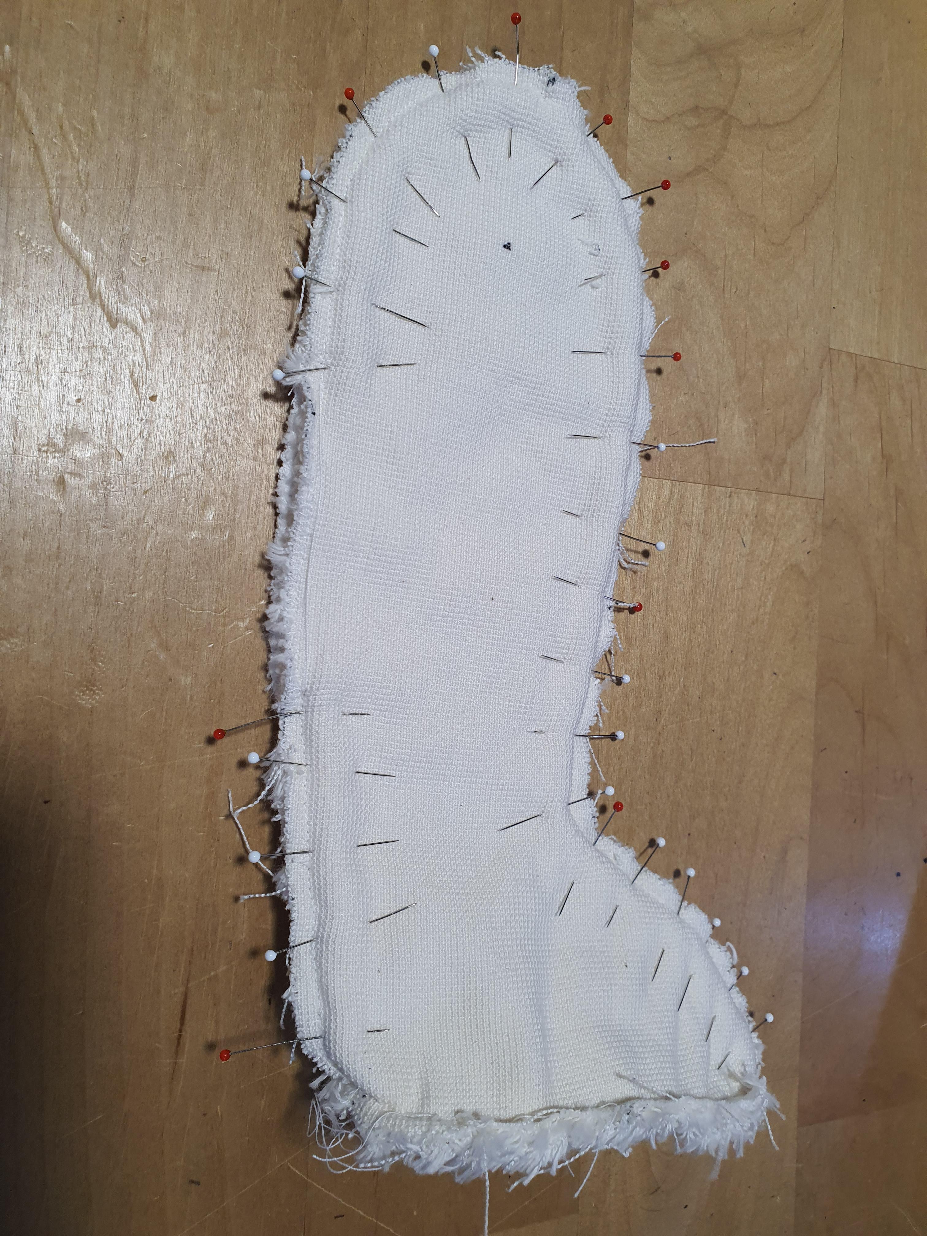 쪼인트 구멍이 표시된 안쪽 다리와 구멍 표시가 없는 겉쪽 다리를 창구멍과 발바닥 부분만 남기고 바느질 해줍니다.