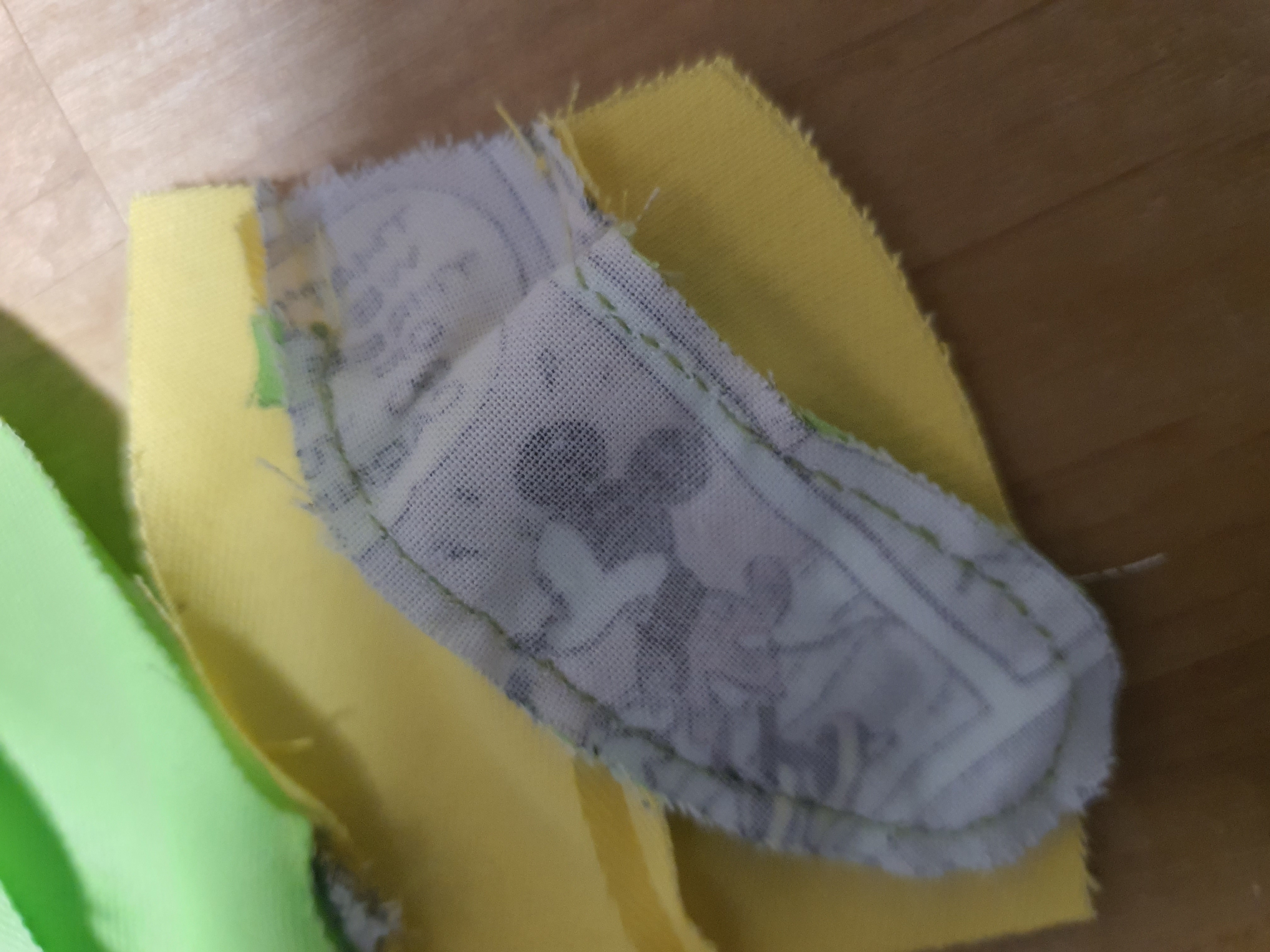 귀는 곡선 부분만 바느질 하여 뒤집어 놓습니다.