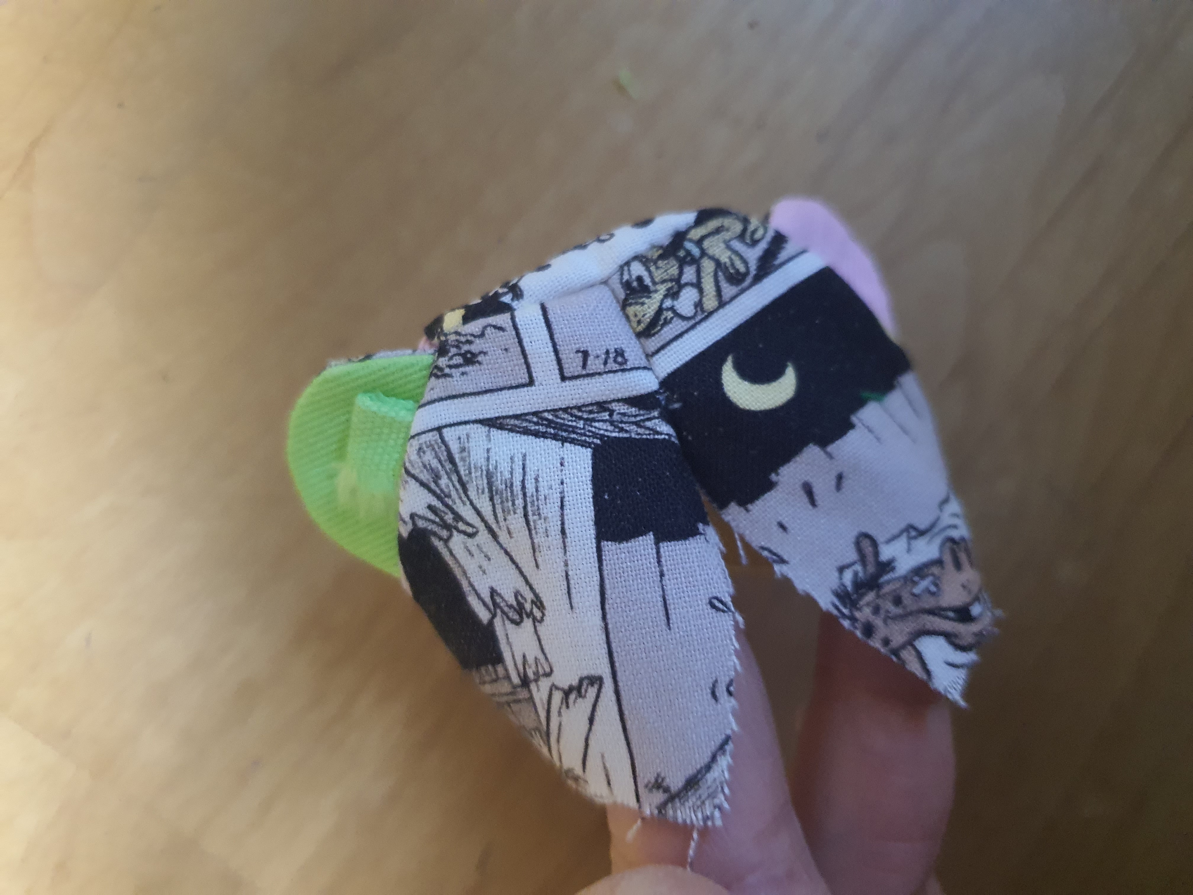 귀에 솜을 넣고 바느질로 고정해 줍니다.