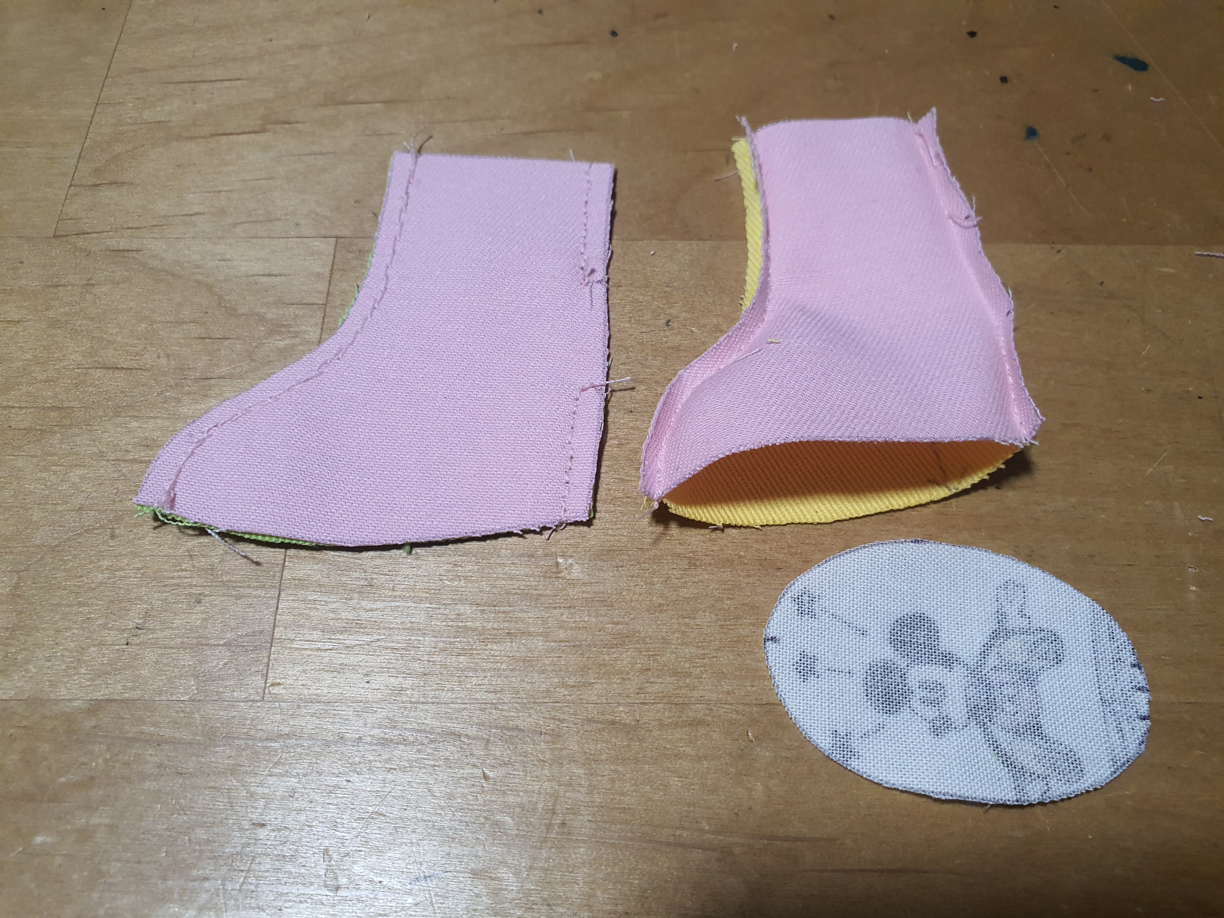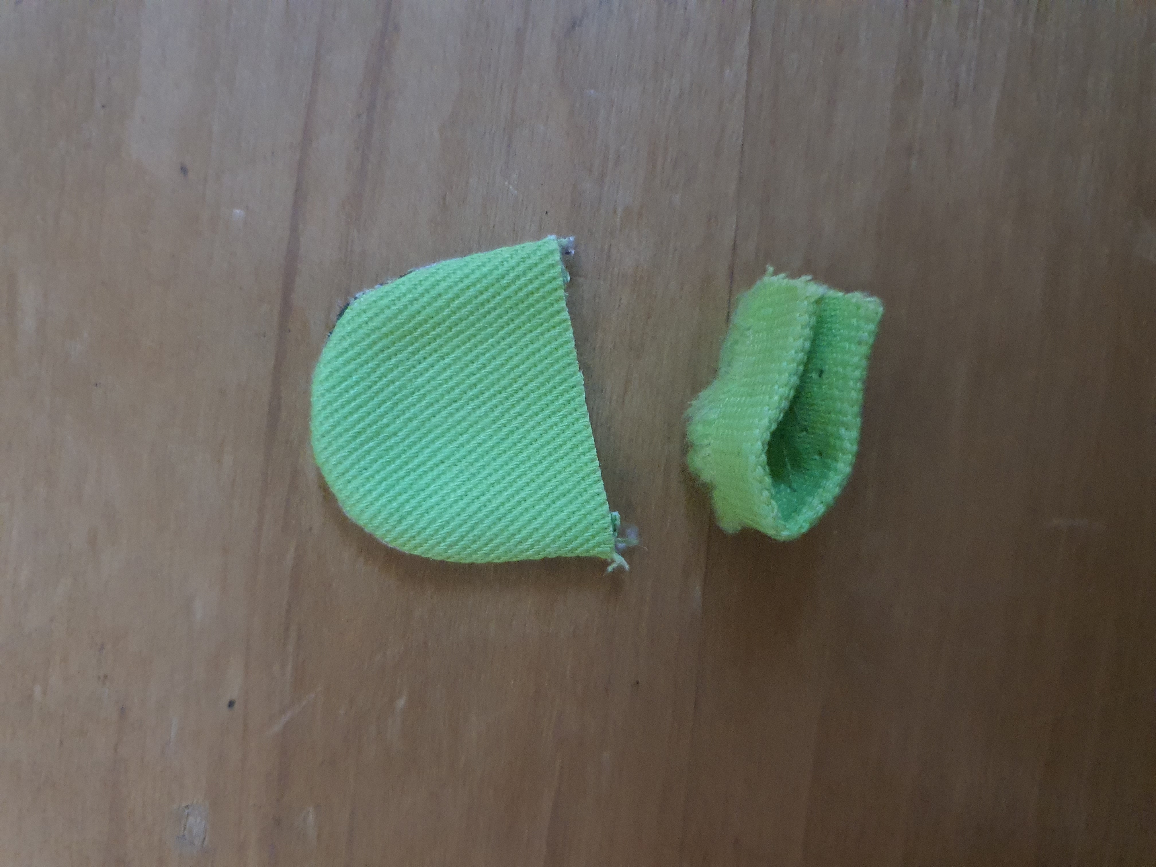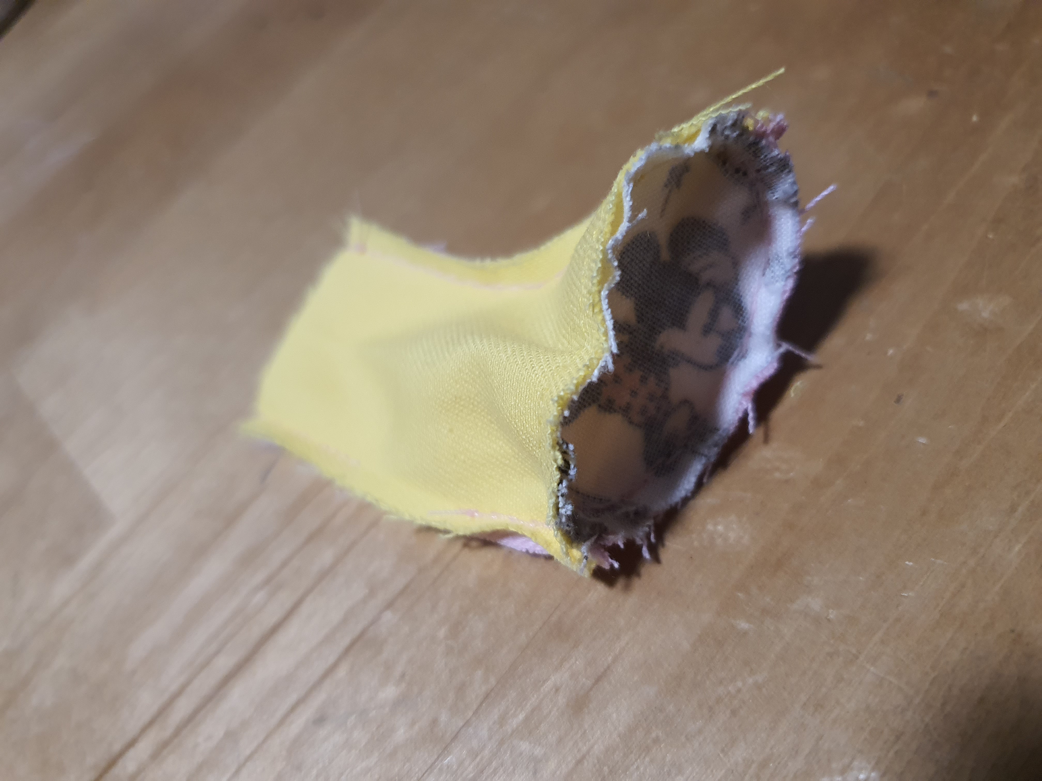 귀는 곡선 부분만 바느질 하여 뒤집어 놓습니다.