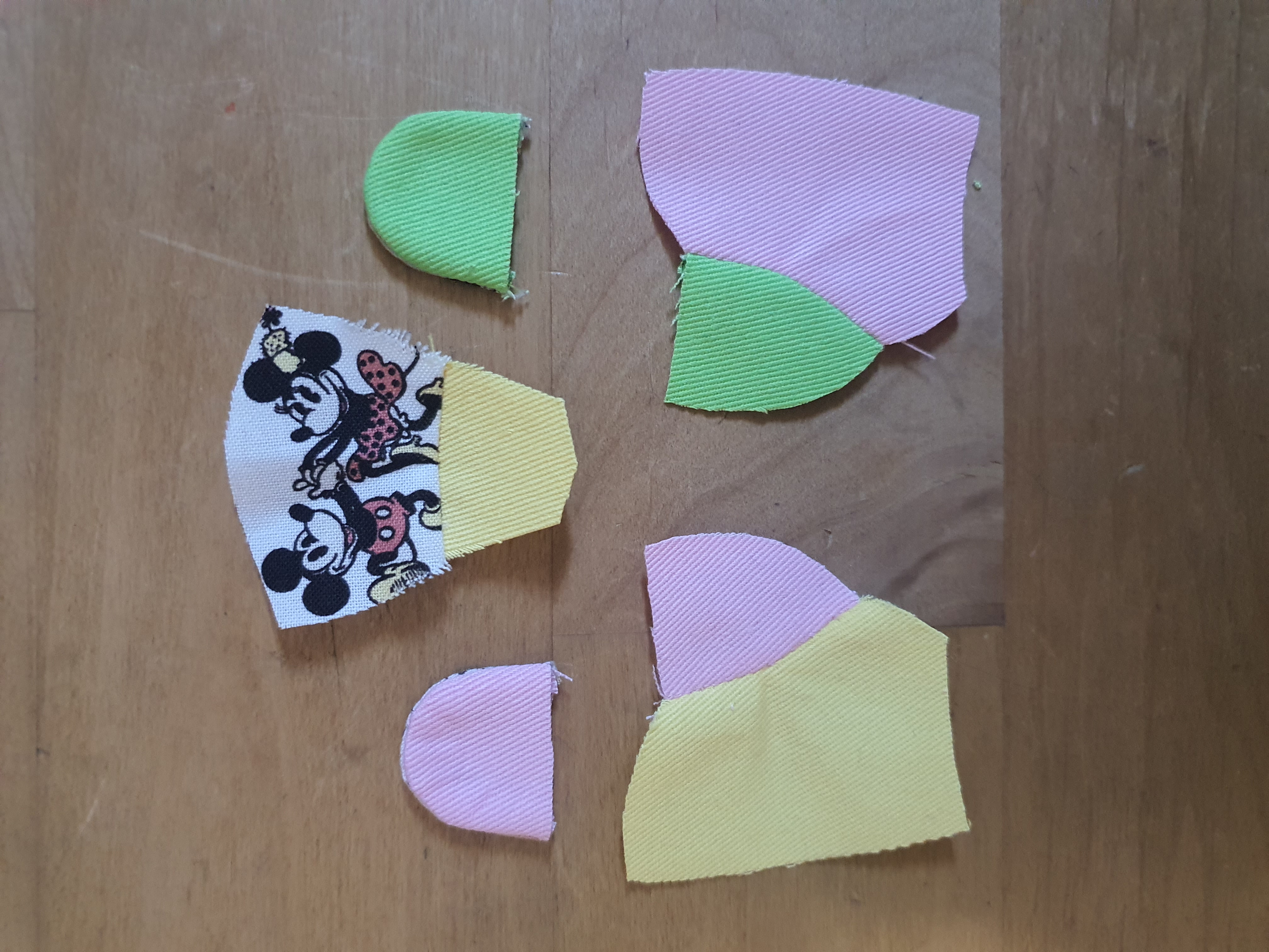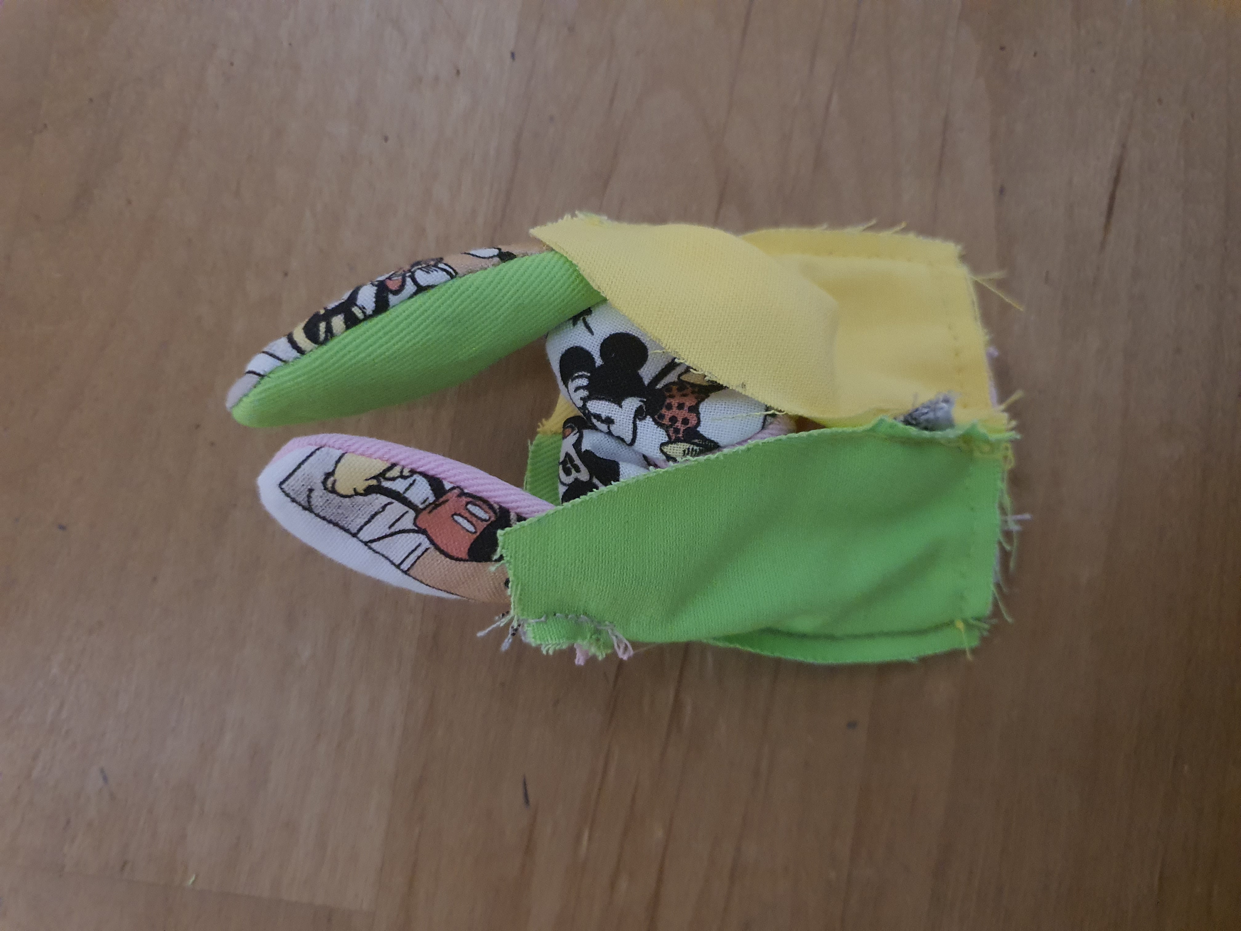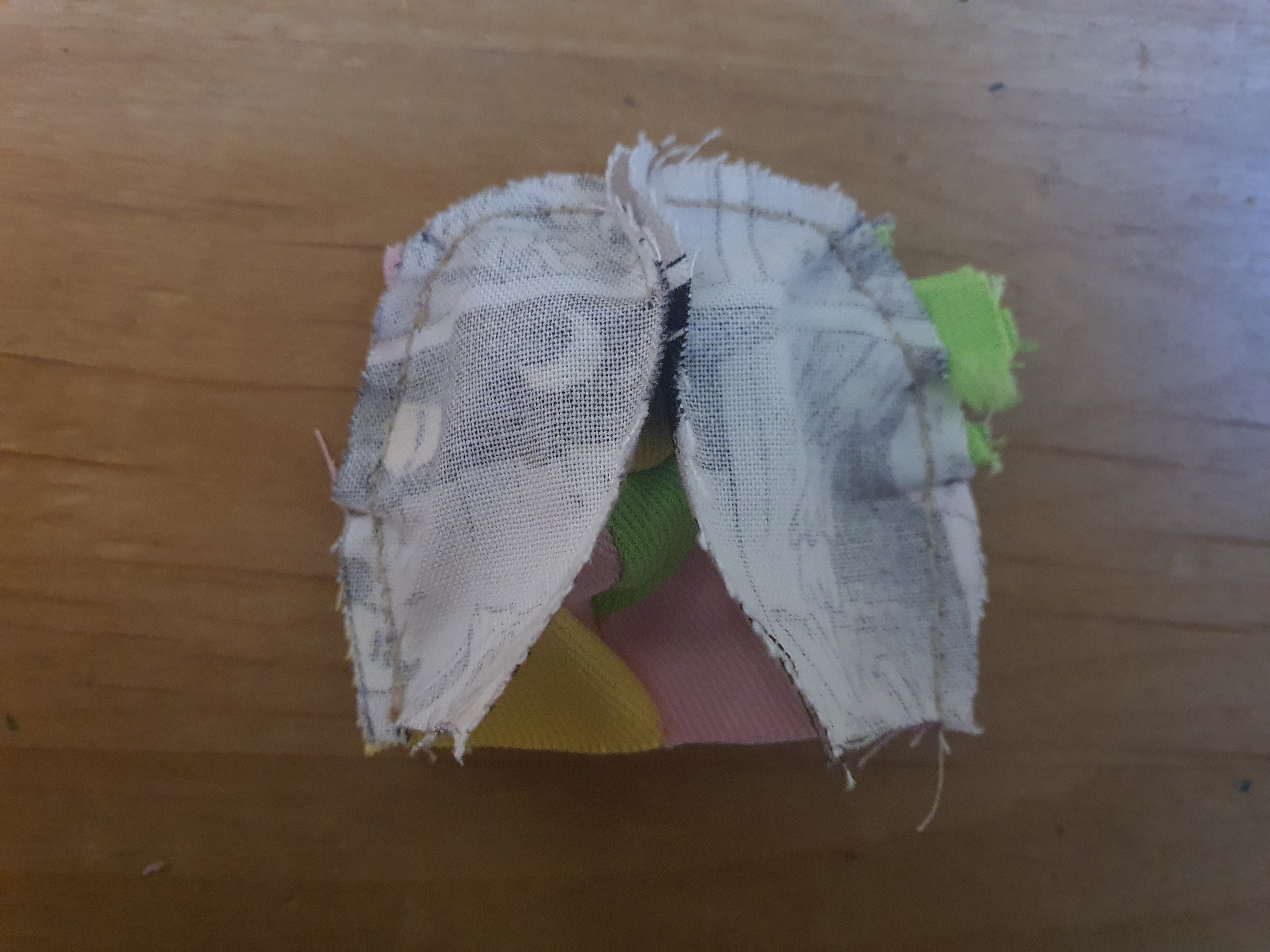 귀는 곡선 부분만 바느질 하여 뒤집어 놓습니다.