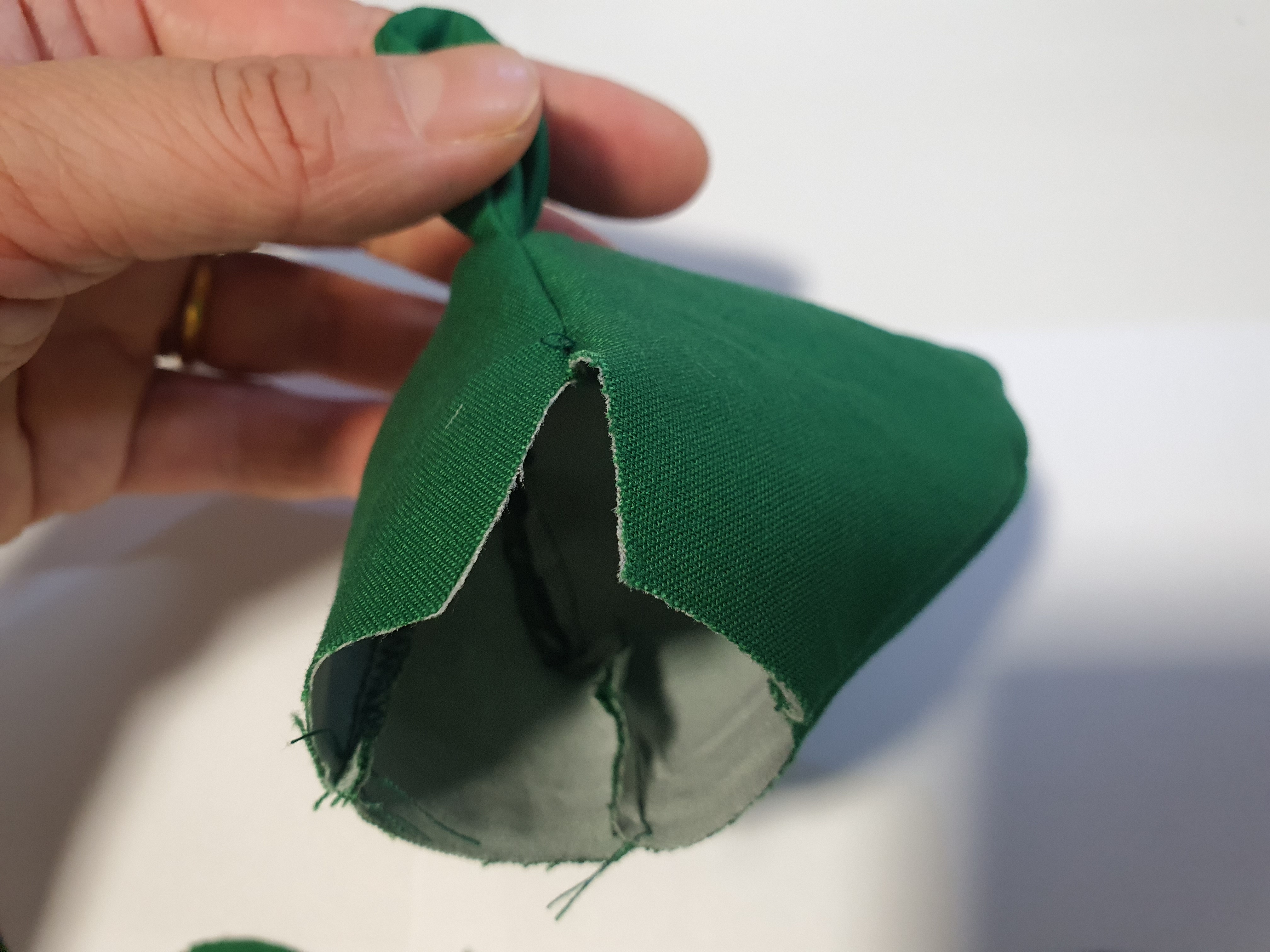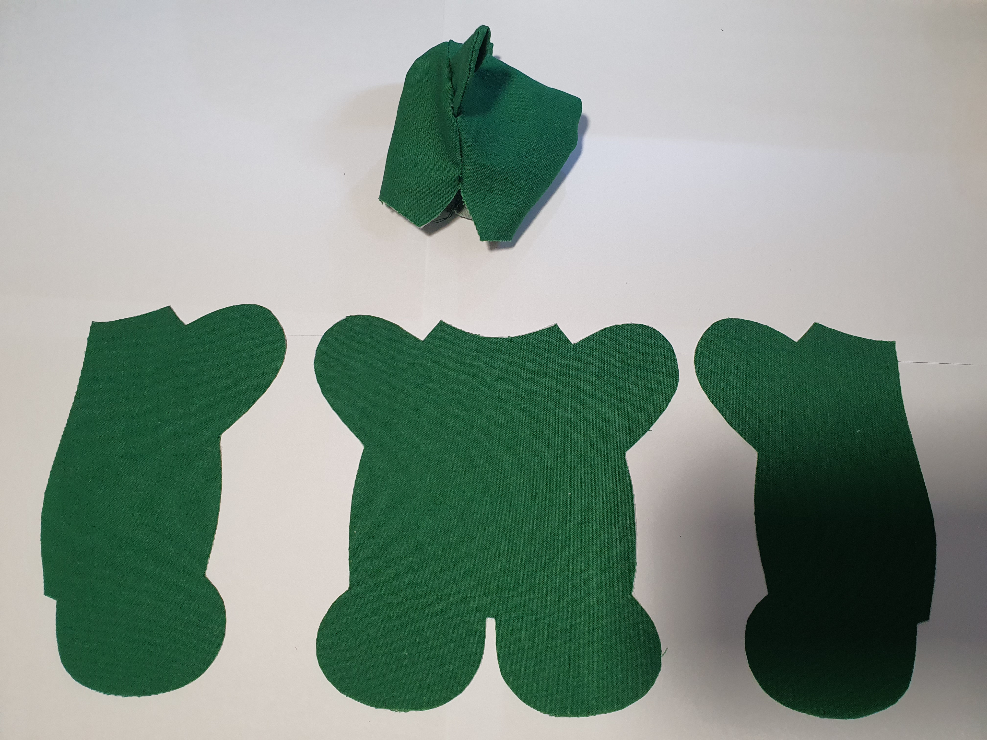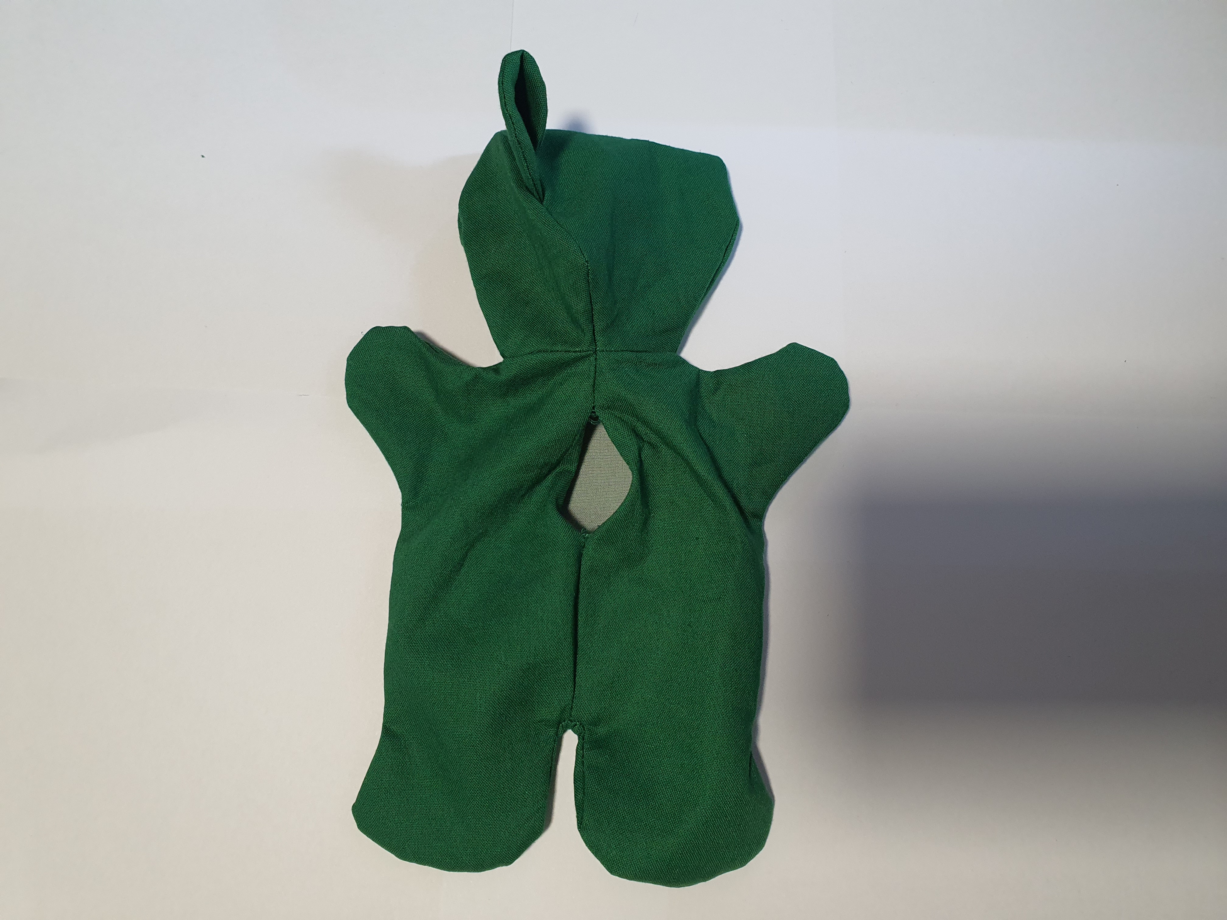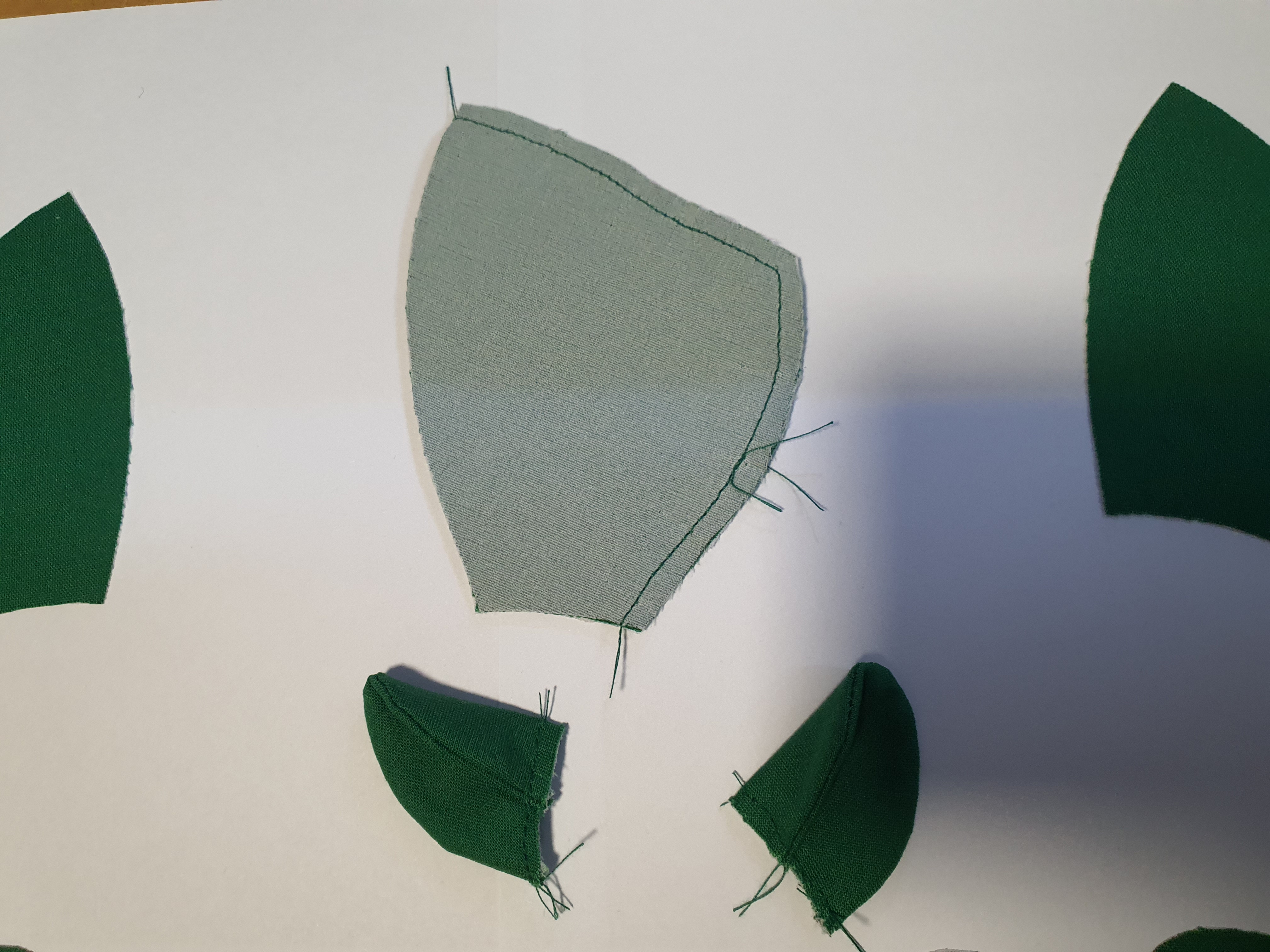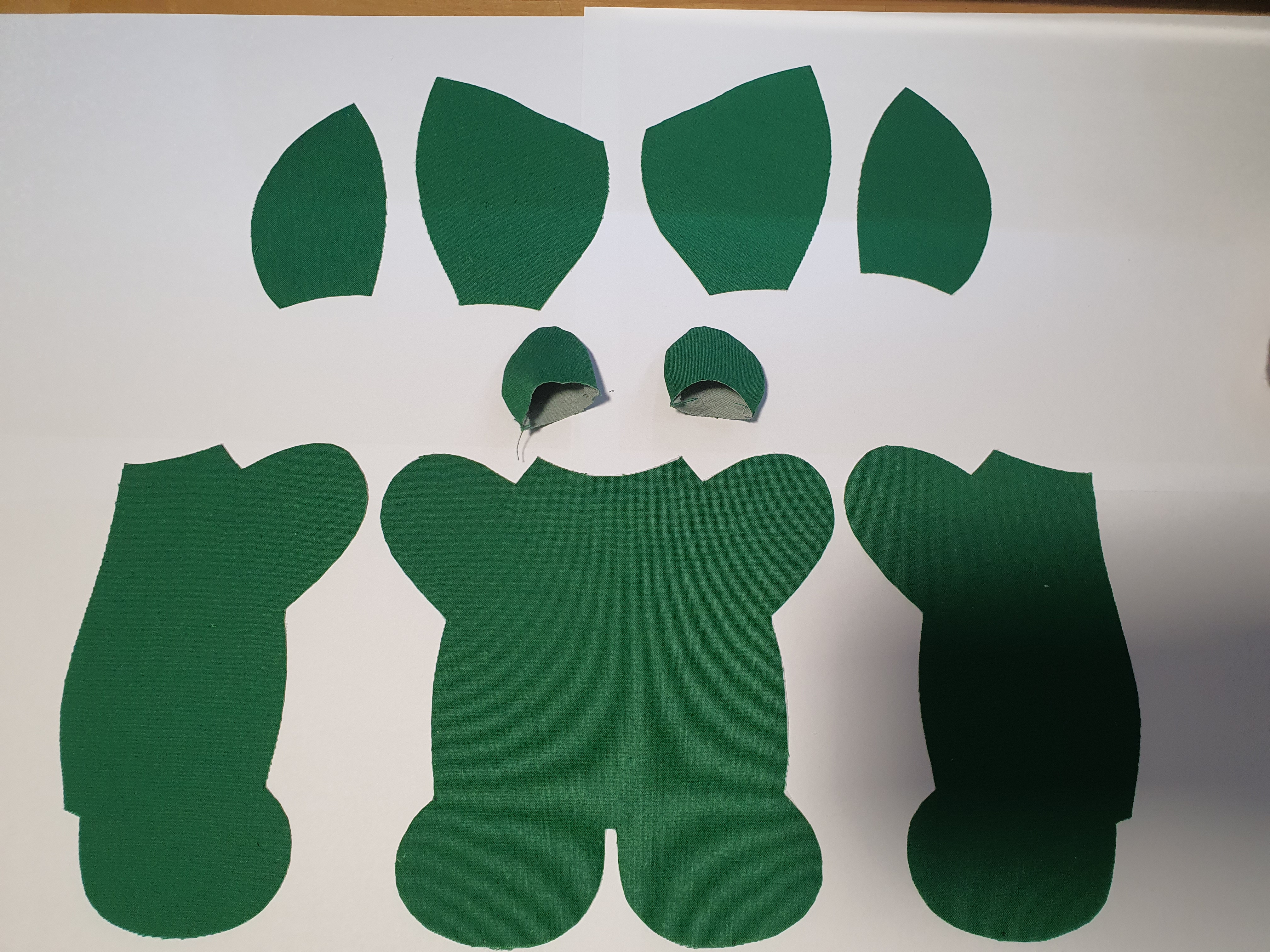 접힌귀가 앞에서 보이도록 끼워 넣고 얼굴 앞 뒤를 바느질 해서 머리를 완성 합니다.