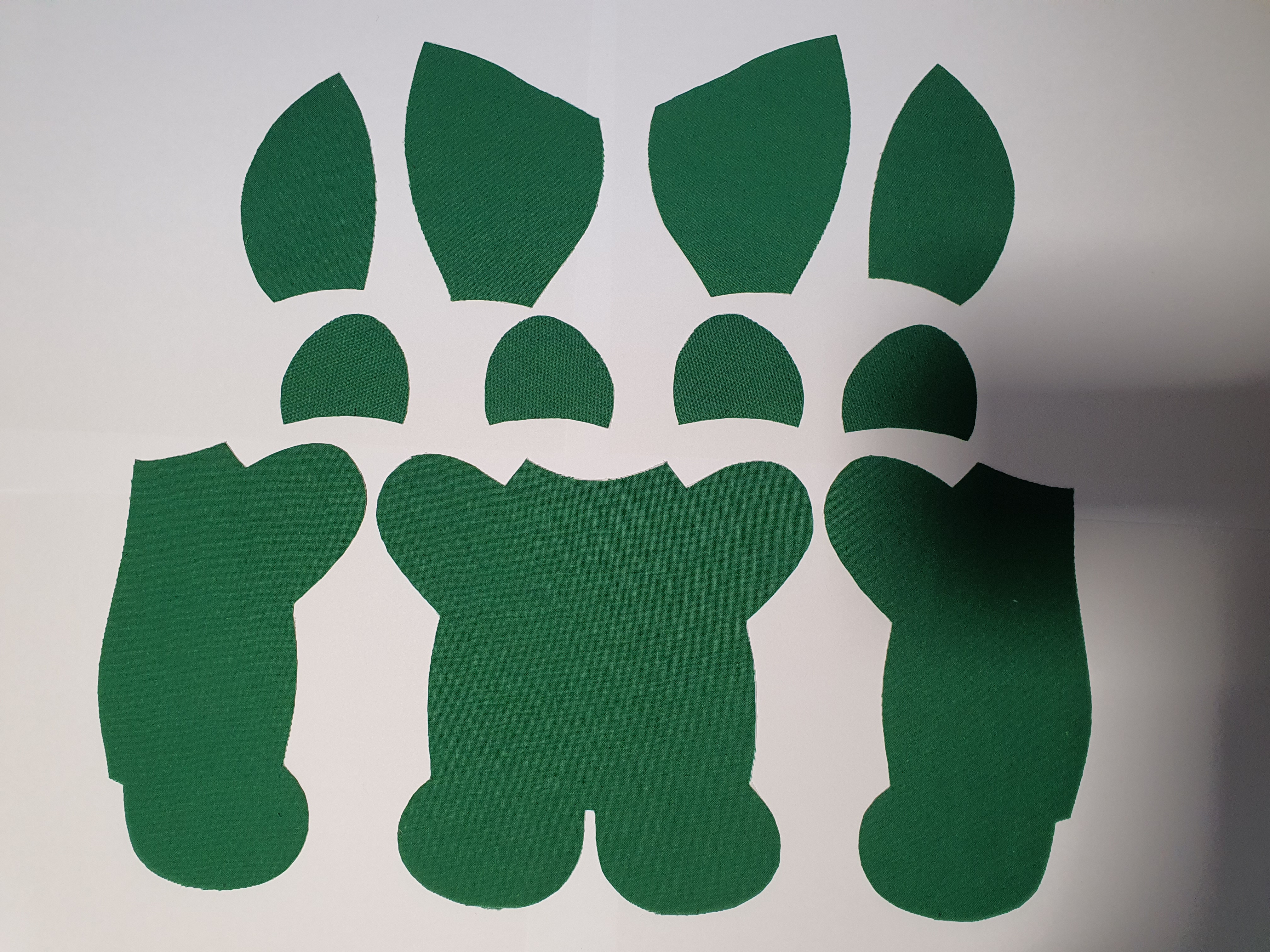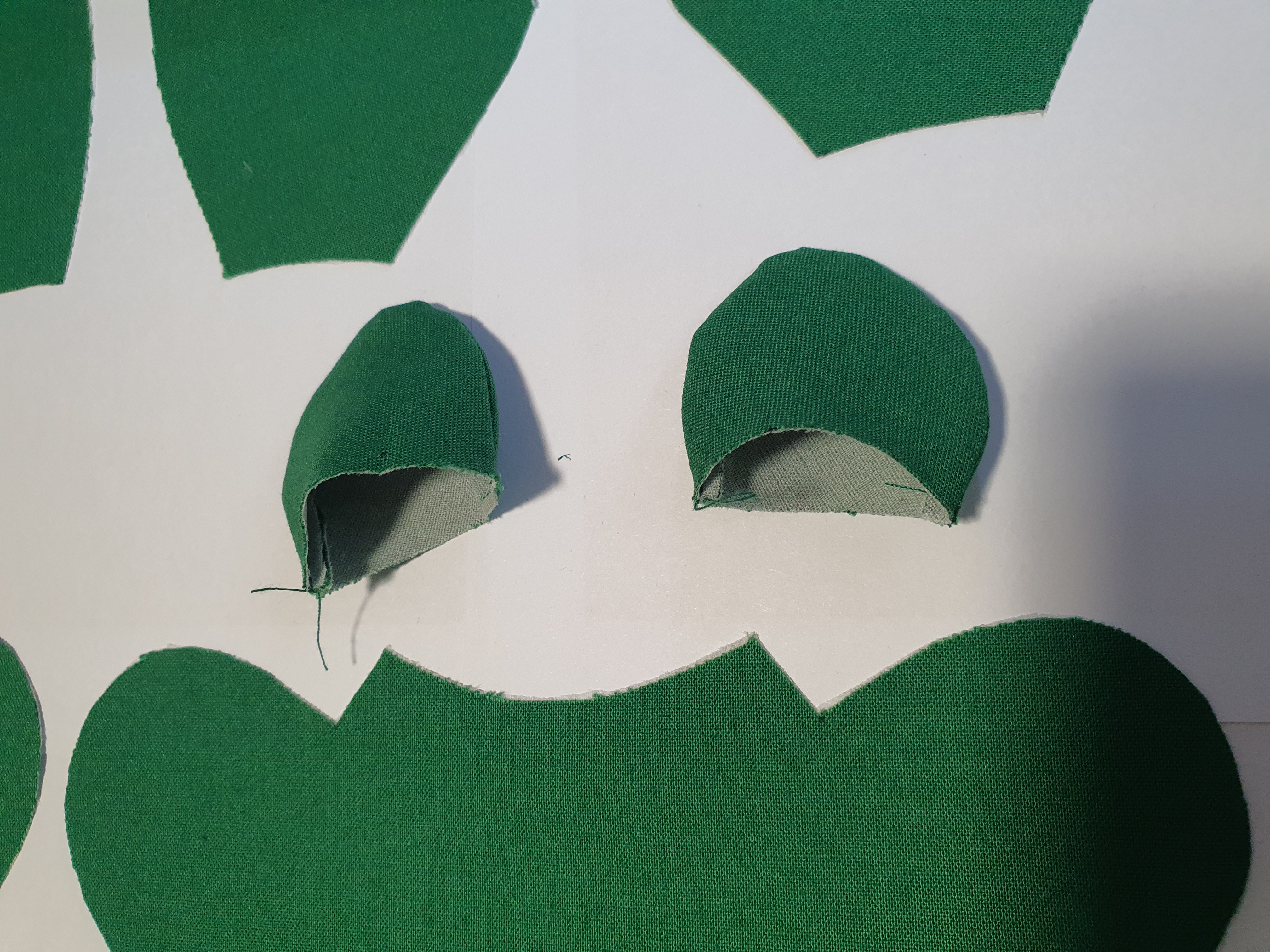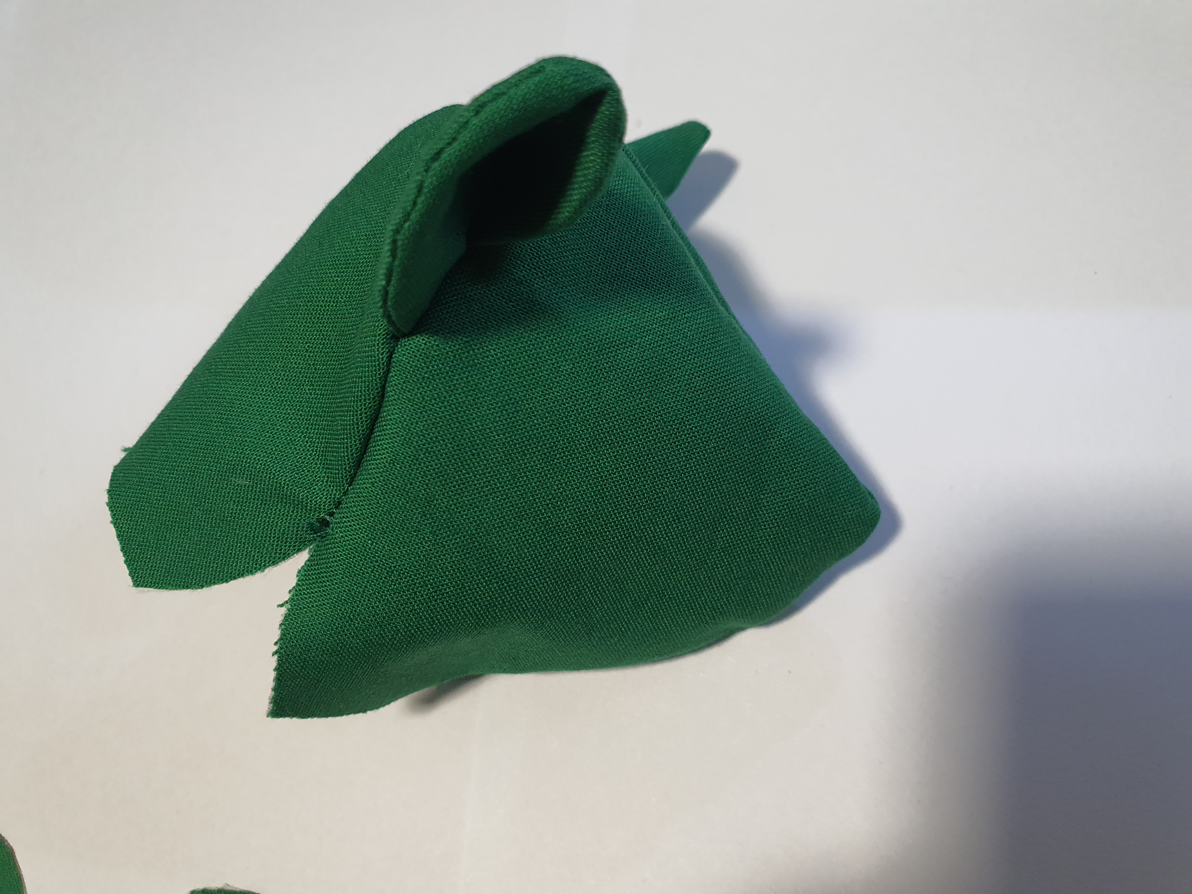 접힌귀가 앞에서 보이도록 끼워 넣고 얼굴 앞 뒤를 바느질 해서 머리를 완성 합니다.