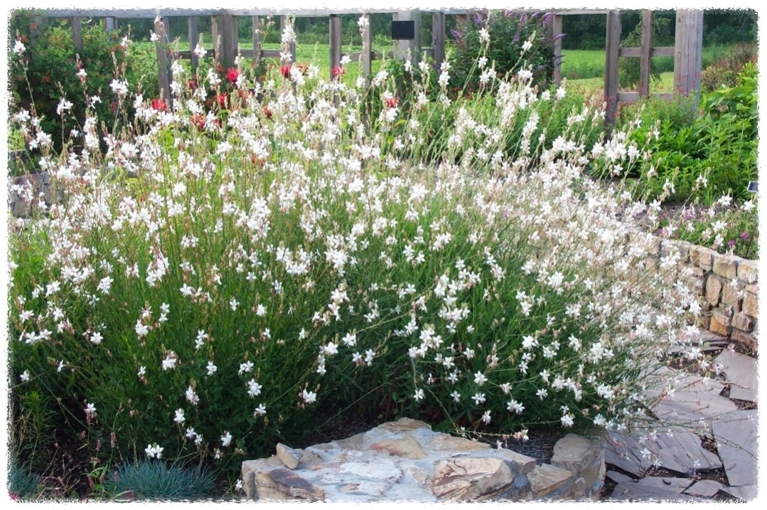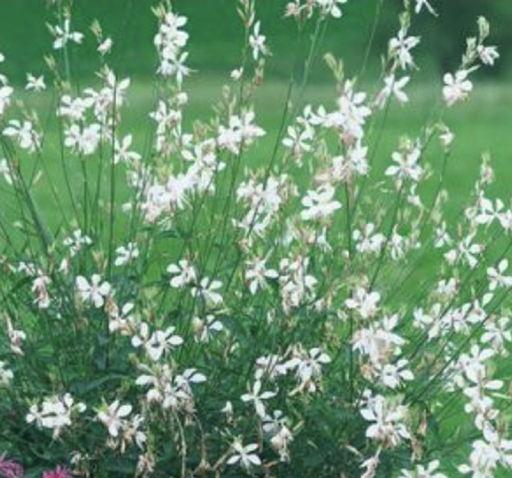 📌 ‘White Dove’ 가우라는 작고 순백색 꽃이 많아 정원에 눈처럼 흰 무드를 더해 줍니다. 여름부터 가을까지 긴 기간 동안 꽃이 피는 것이 특징이에요