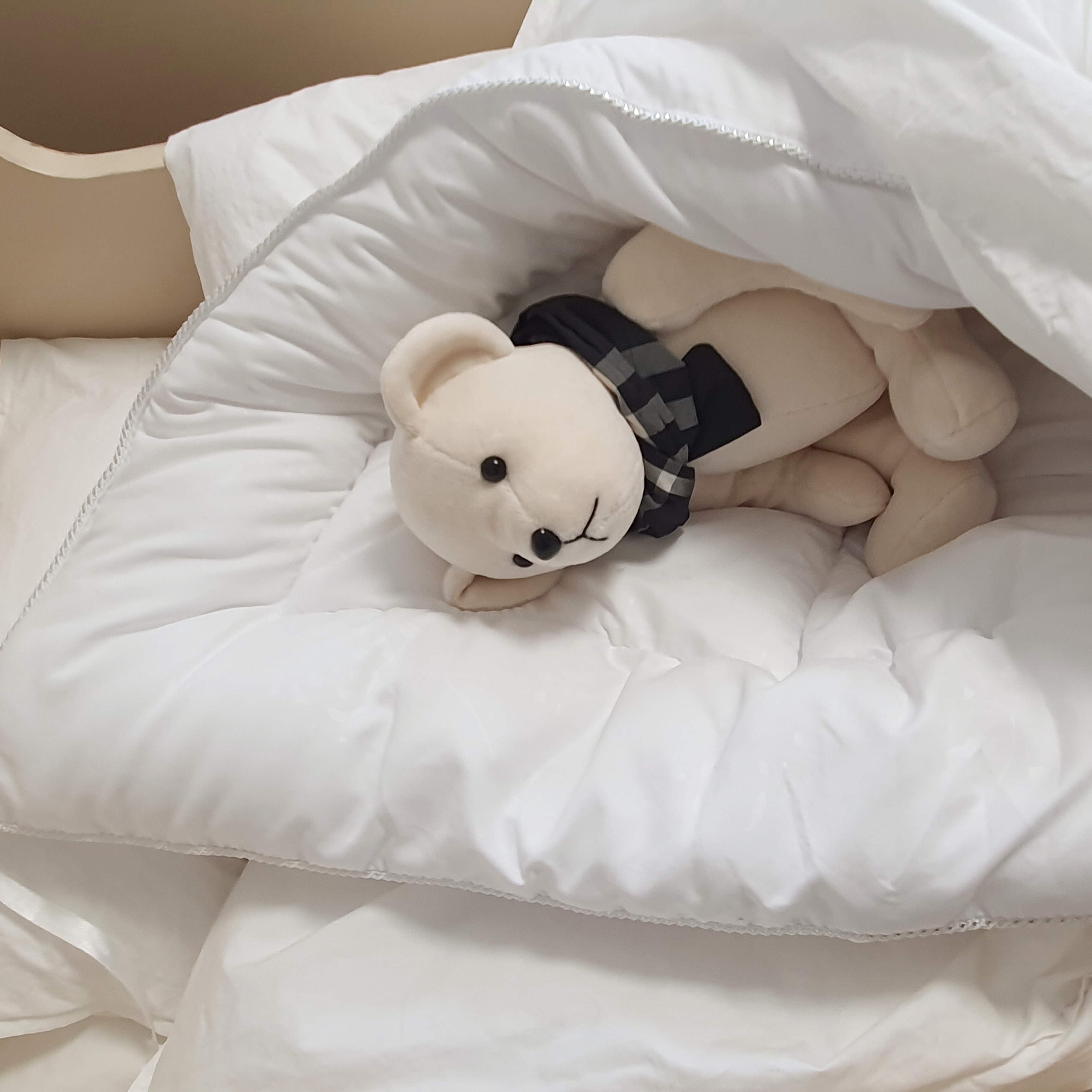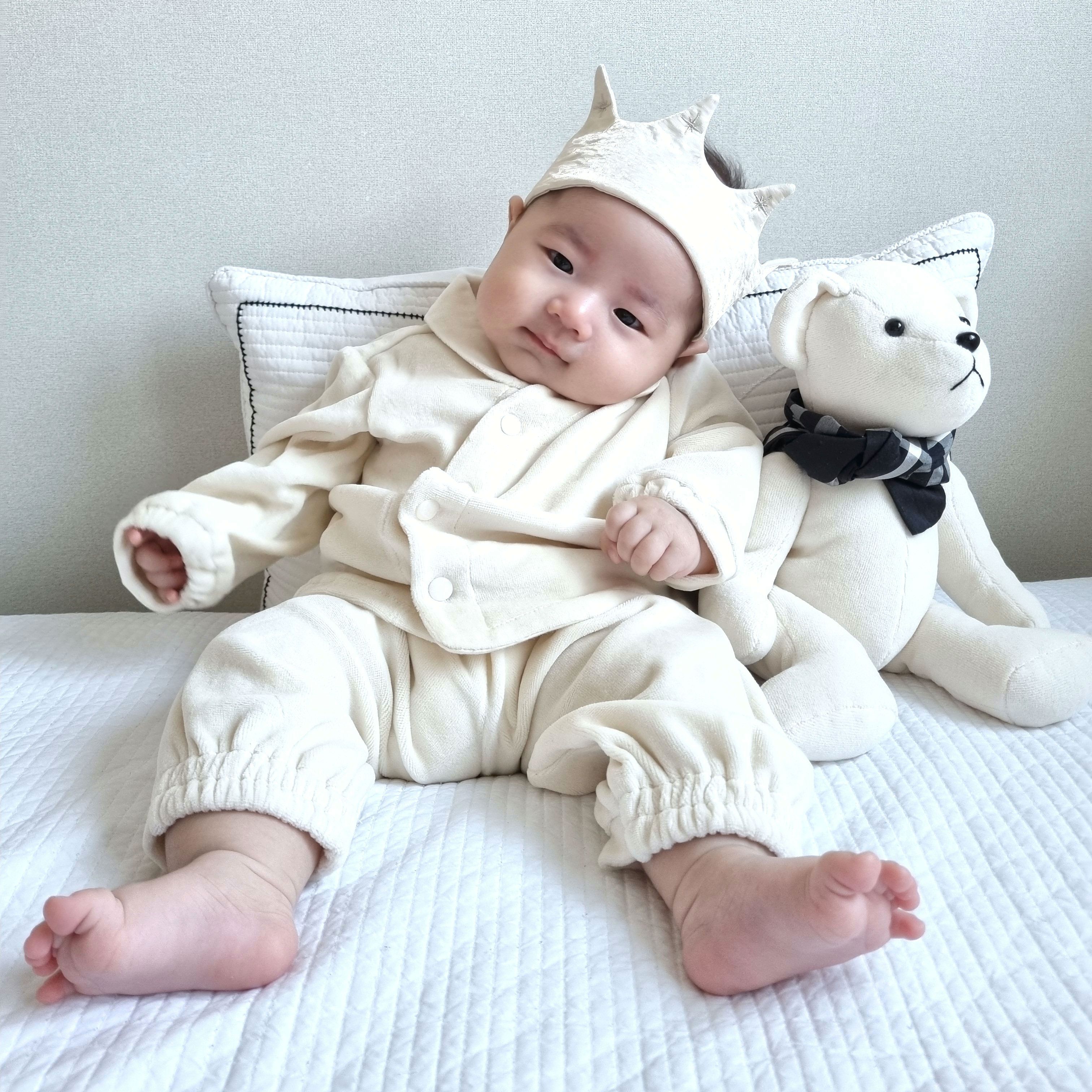 (유기농 면벨벳 원단) 아기옷과 같은 원단으로 신생아 아기가 물고 빨아도 안전한 베어를 만들었습니다.