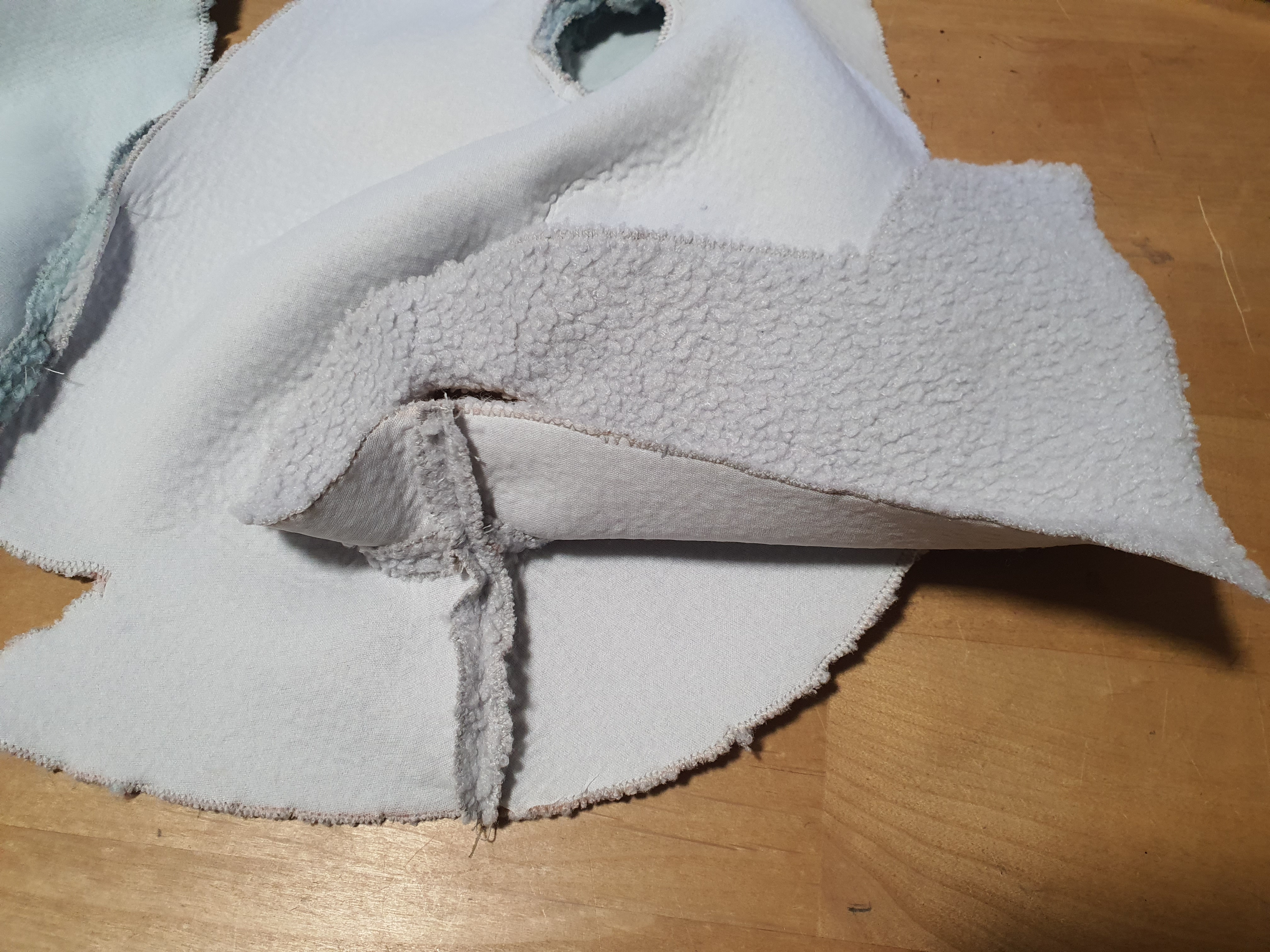 어깨선을 겉원단이 서로 만주 보도록 바느질